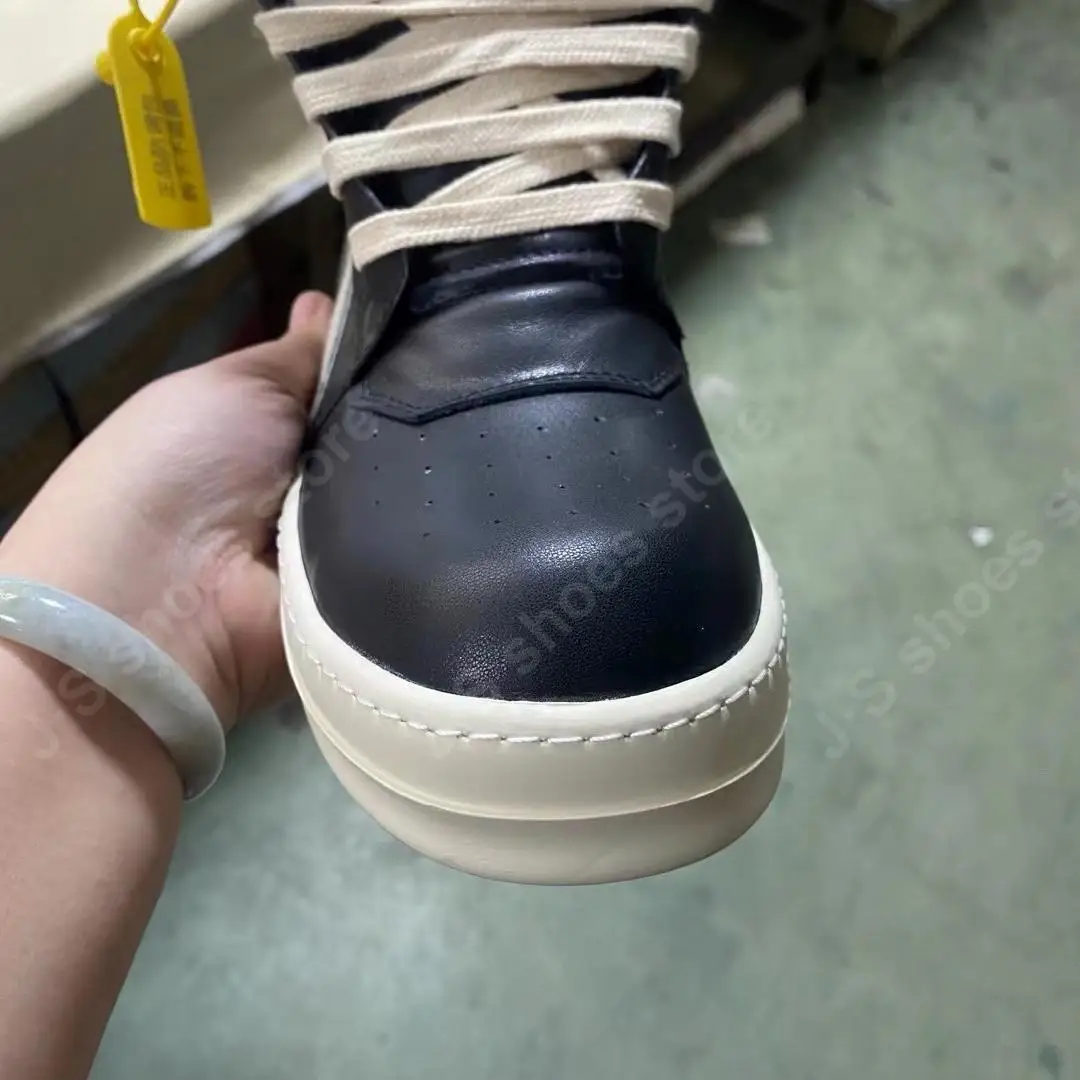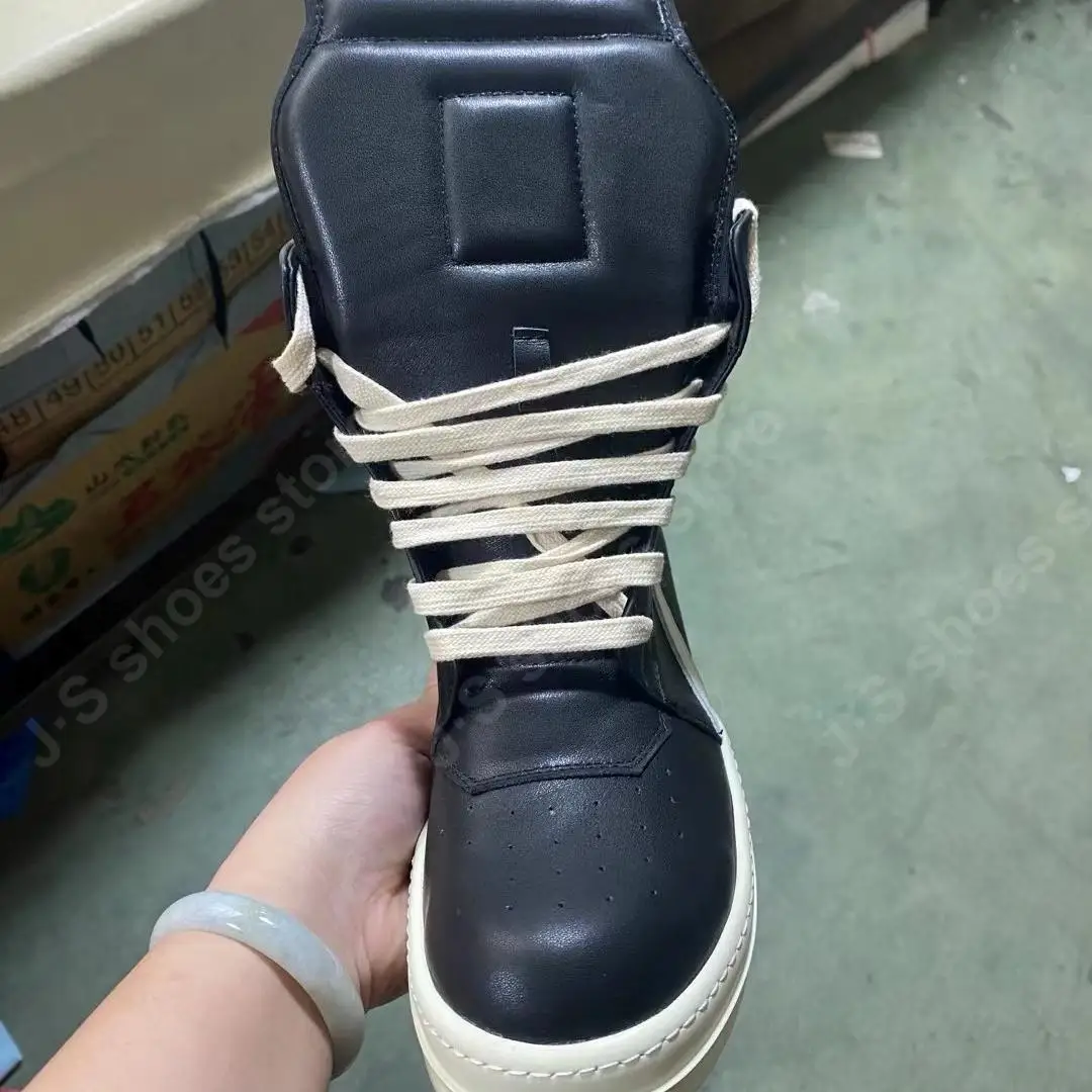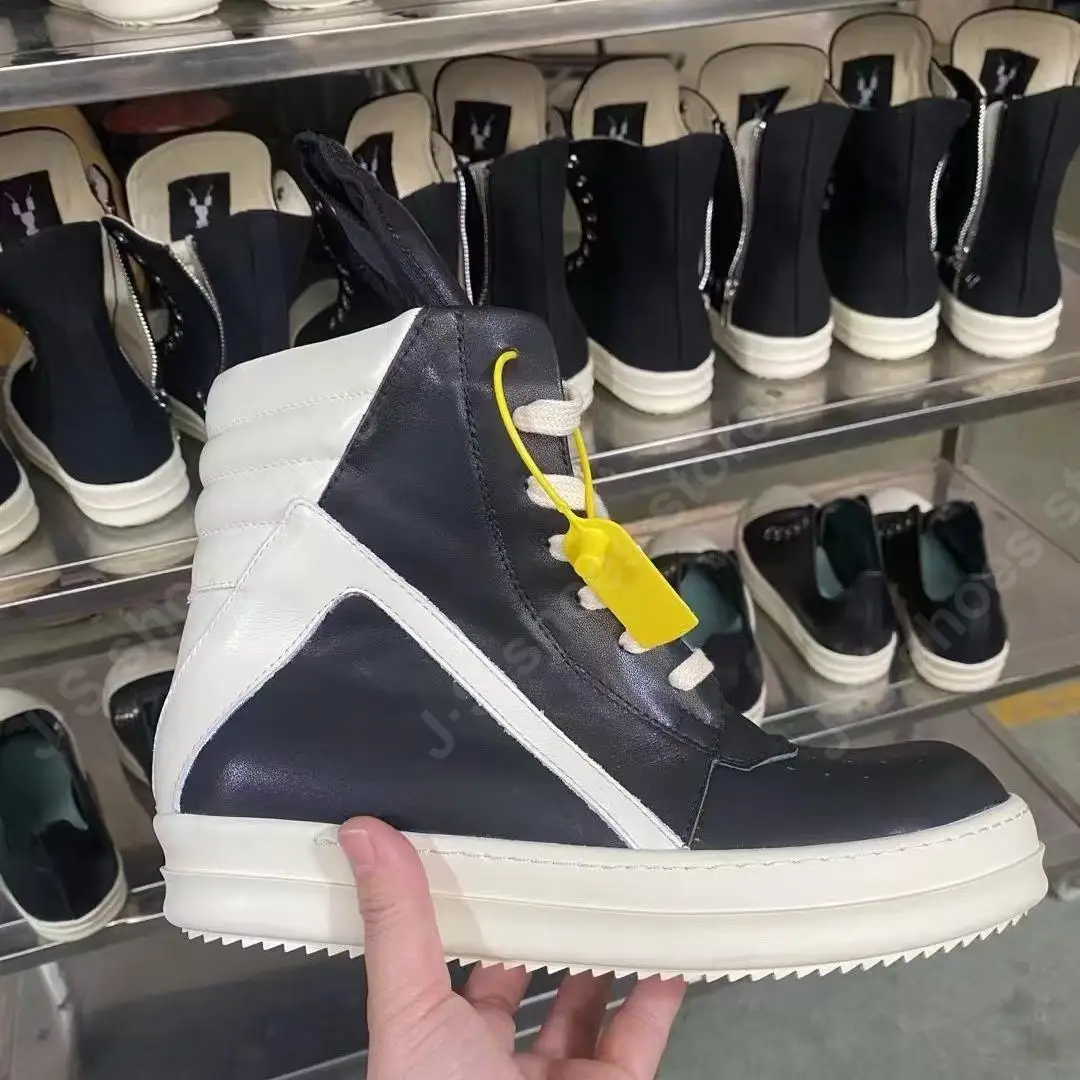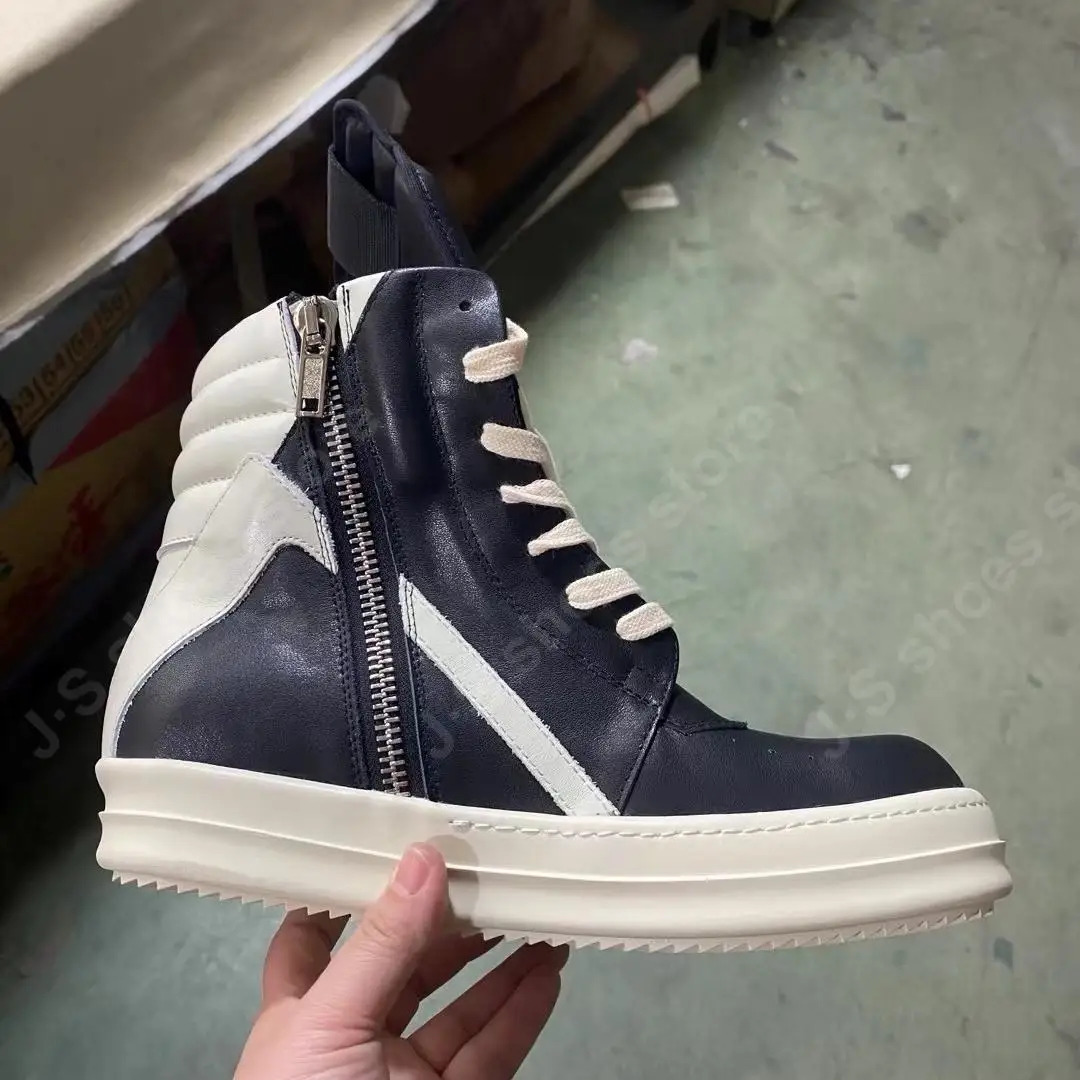 R-o Quality Men Shoe Black Leather Ankle Boot Outoor Boots High Top Casual Shoes Zipper Women Sneaker Flat Cowhide Sneakers