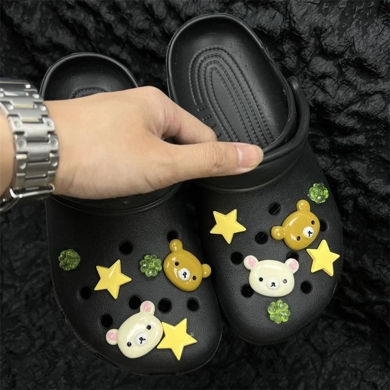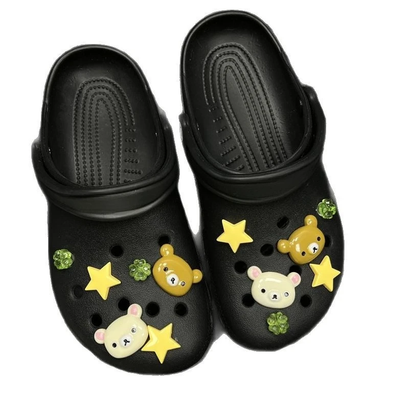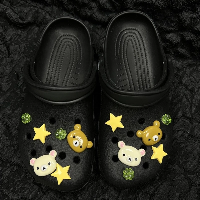 Potdemiel White & Brown Bear Shoe Charms DIY Sandals Clogs Slippers Accessories Transparent Four-Leaf Clover Decor X-mas Gifts