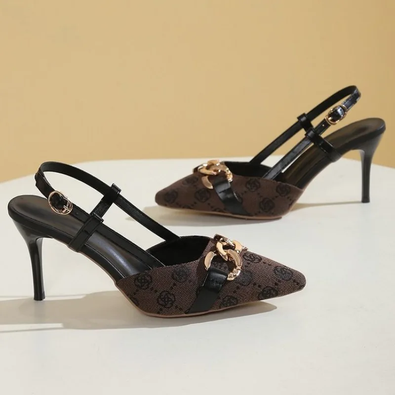 2025 Women's Fashion Baotou Sandals Spring New Pointed Head Shallow Mouth Metal Buckle Anti-slip Wear-resistant High Heels