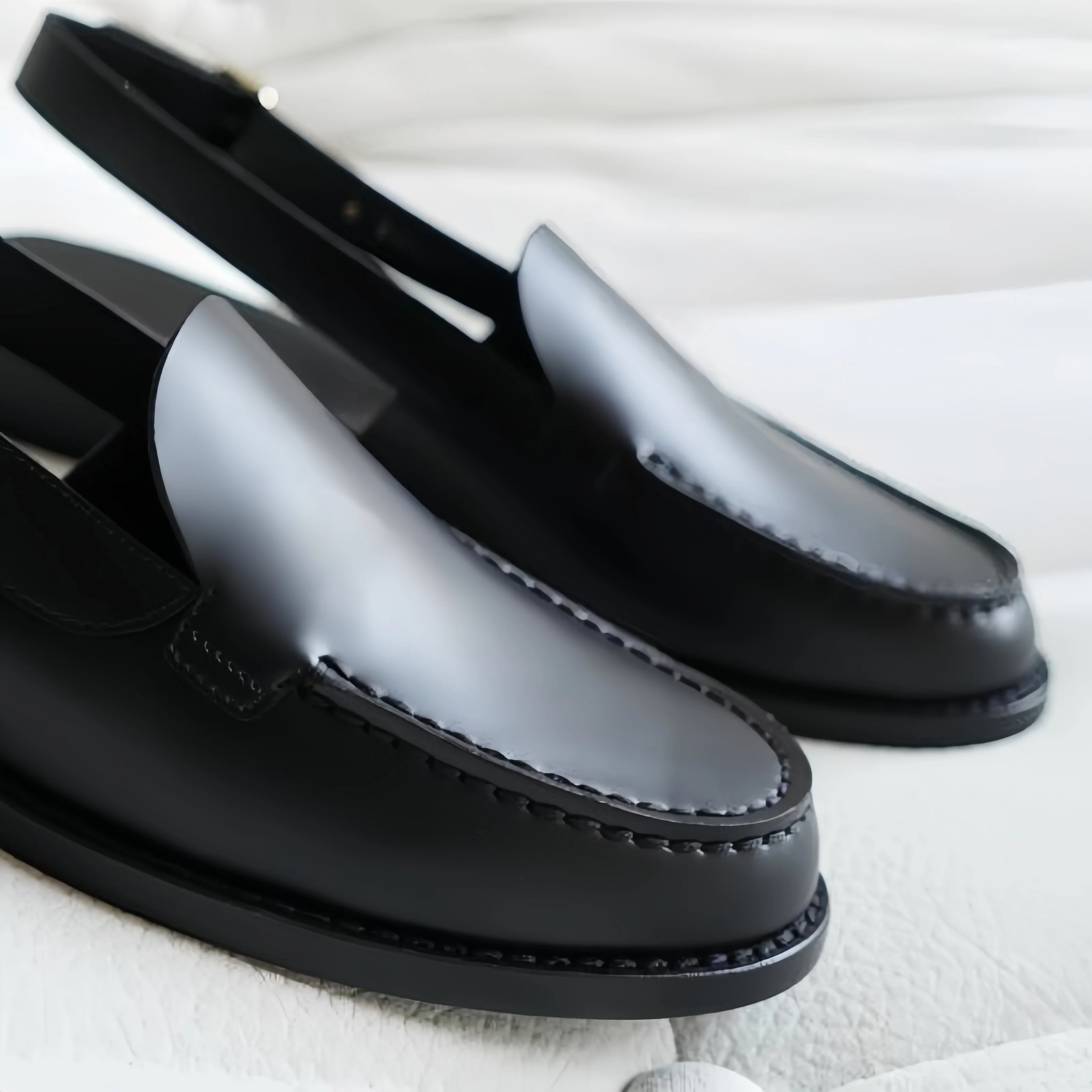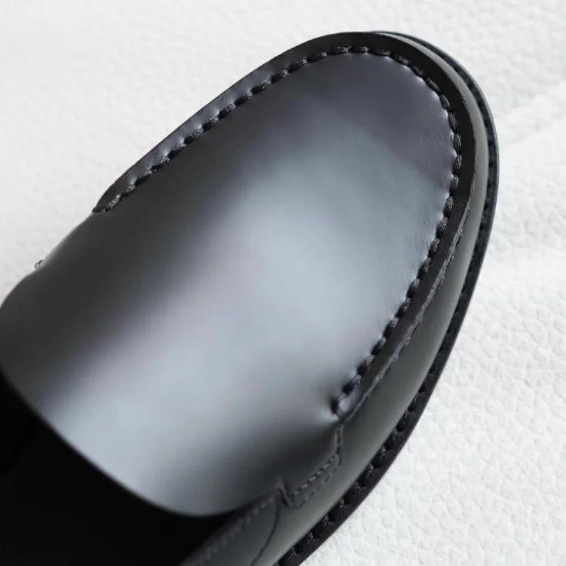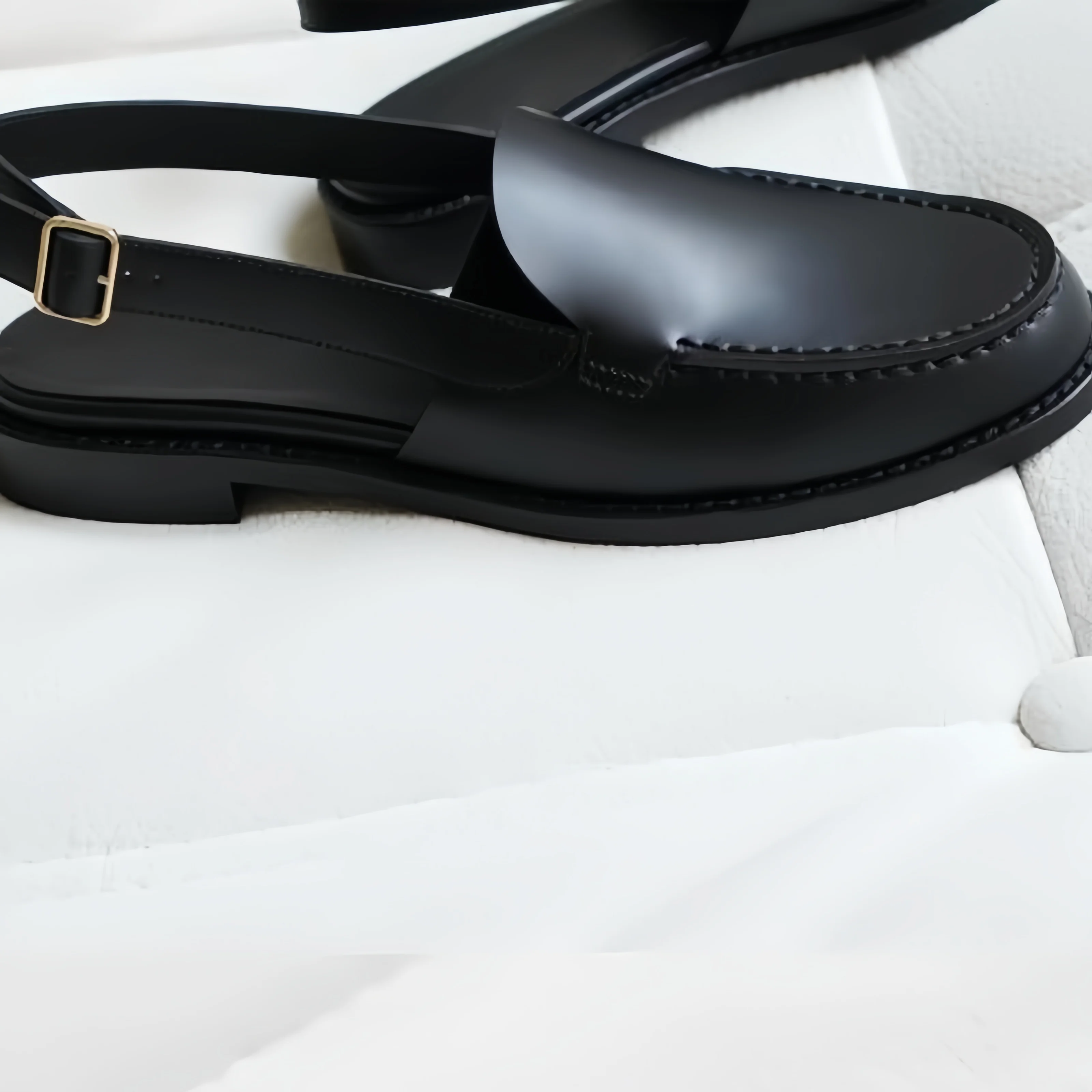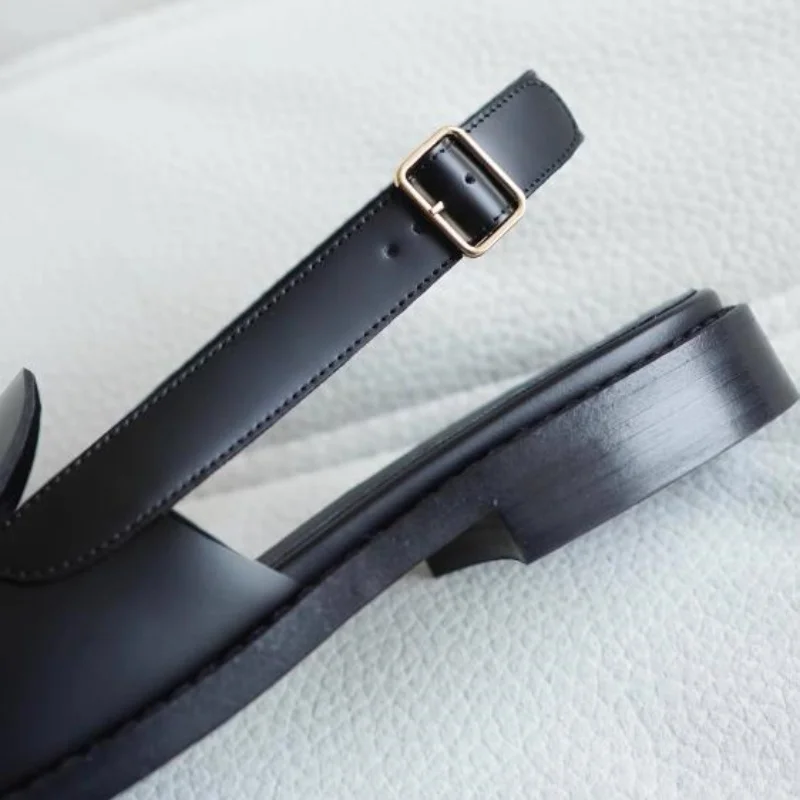 Buckle Shoes for Ladies Round Toes Chunky Mid Heels Sewing Lines Female Sandals Back Strap Leather Zapatos Mujer Solid Chassure