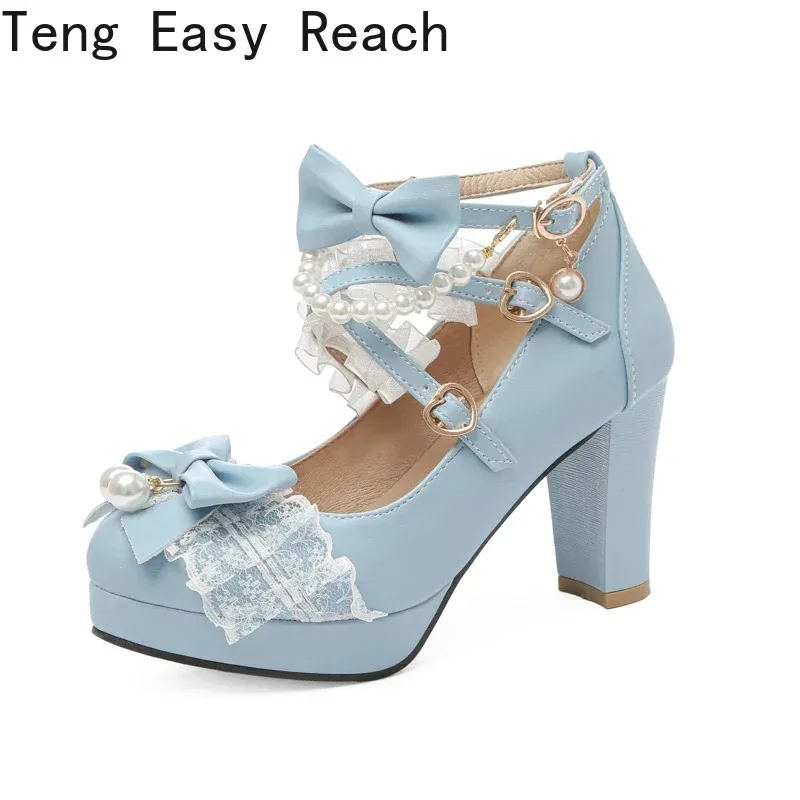 Cross Strap Women High Heels Mary Jane Pumps Party Wedding Cosplay White Pink Black Strawberry Bow Princess 2025 Lolita Shoes