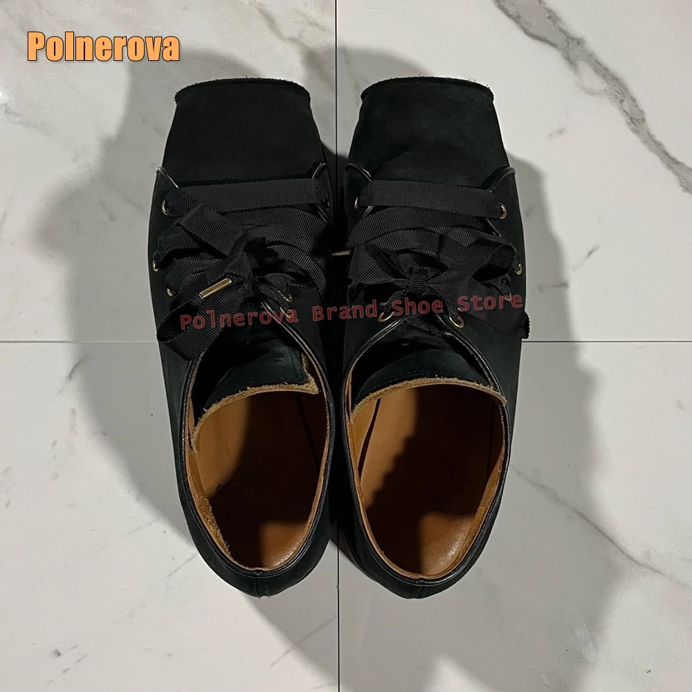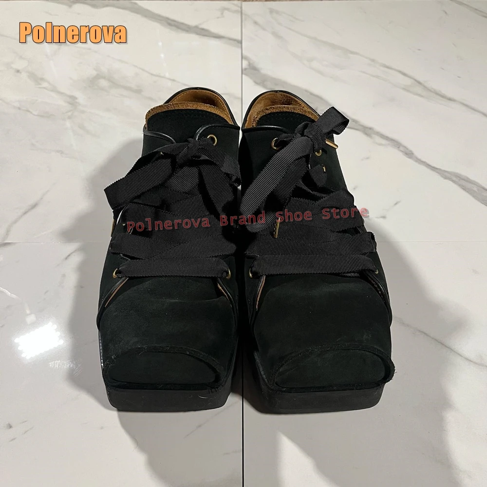 Cross Tied Square Toe Platform Pumps Shallow Solid Casual Couple Shoes Thick Sole Height Increase Patchwork Shoes 2026 New Style