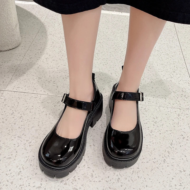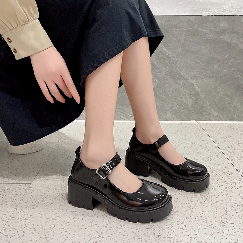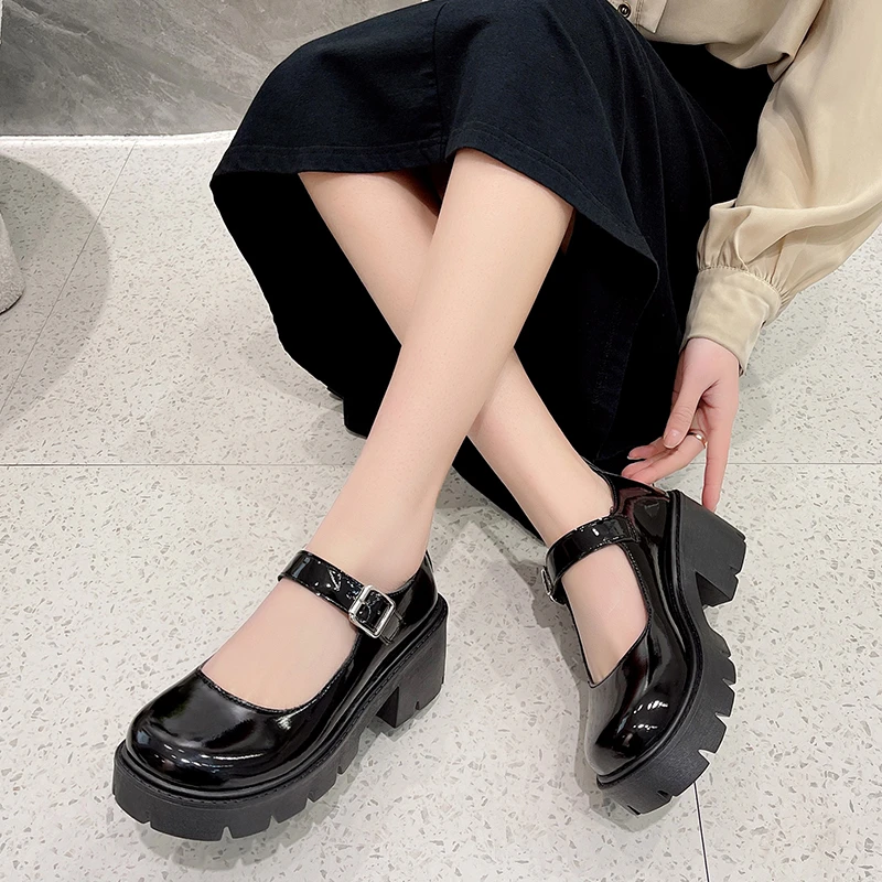 Patent Leather High Heels Mary Jane Shoes Women Japanese Style Ankle Buckle Platform Pumps Woman Punk Jk Uniform Lolita Shoes 43
