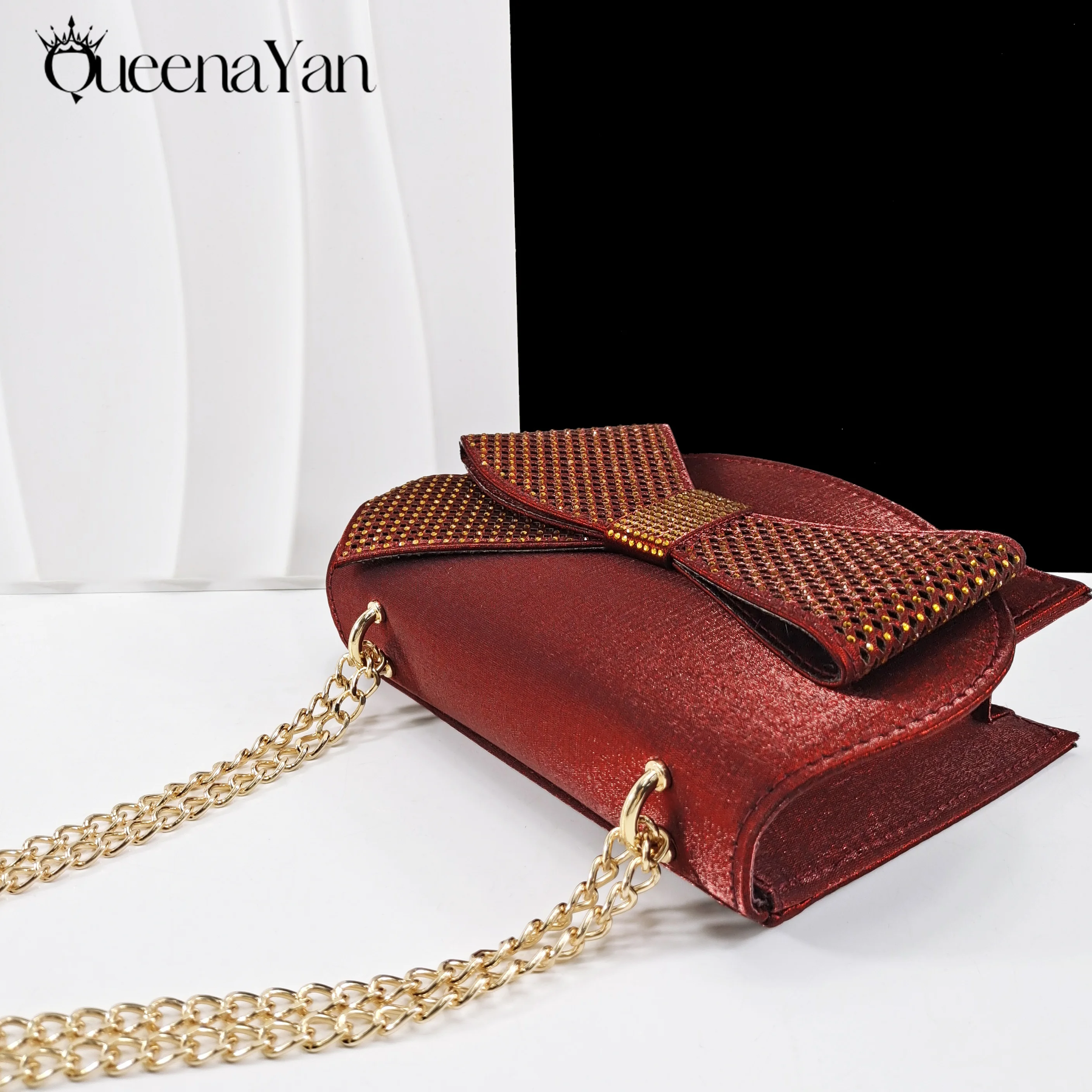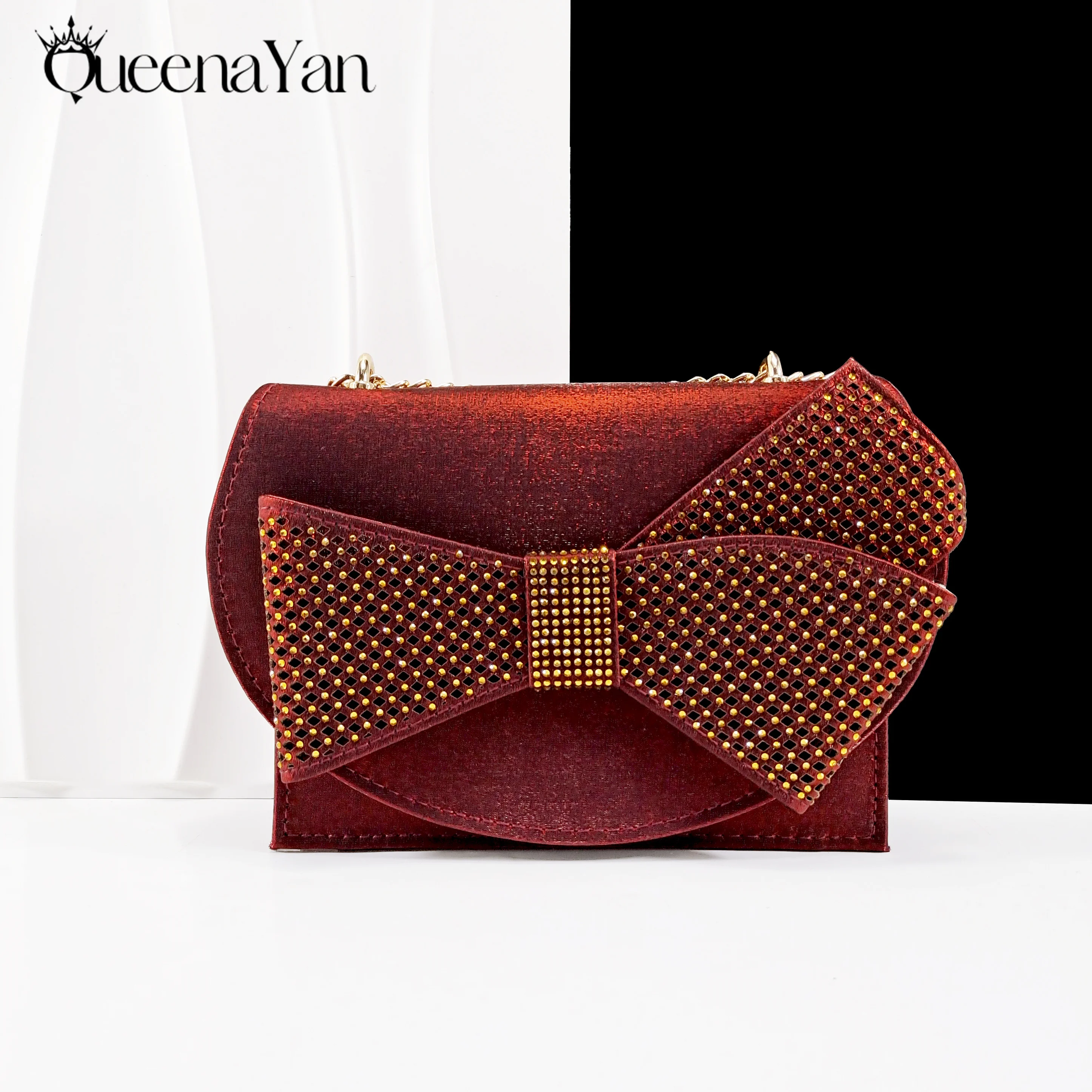 Queena Yan Elegant Women High Heels for Peep Toe Good Material Rhinestone Wine Sandals Italian Design Shoes and Bags Matching