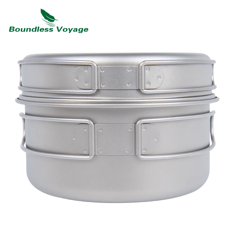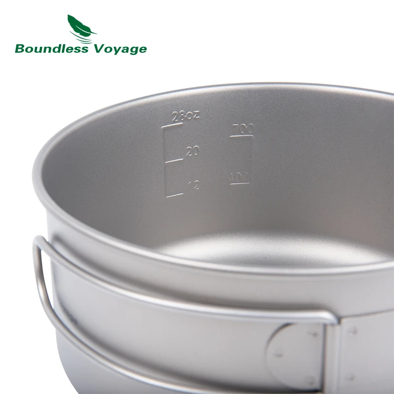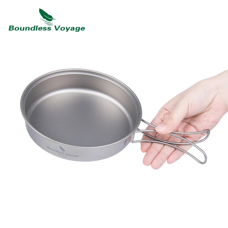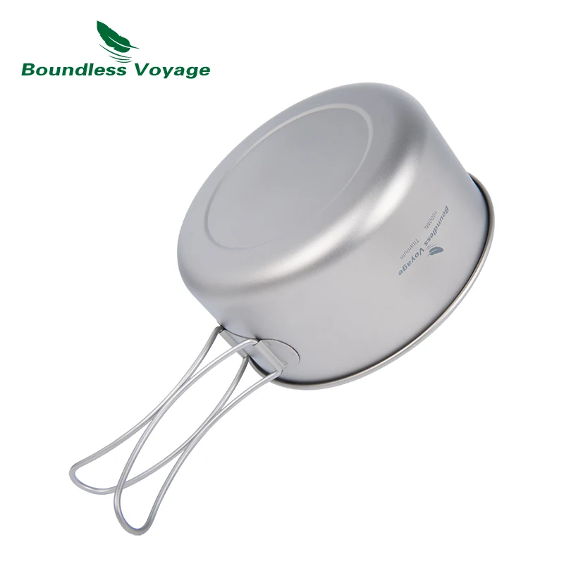 Boundless Voyage Outdoor Titanium Pot Pan Set with Folding Handles Camping Hiking Picnic Ultralight Bowl Plate 1000 500 ML