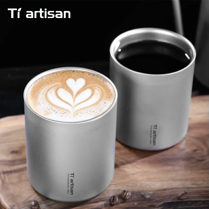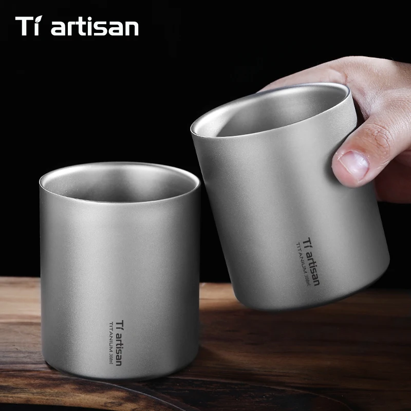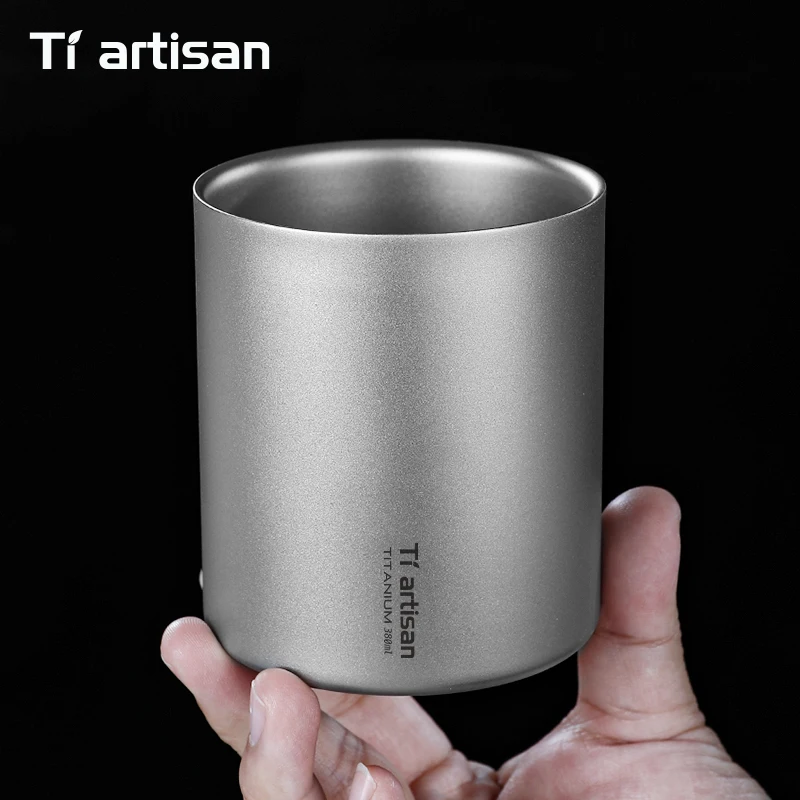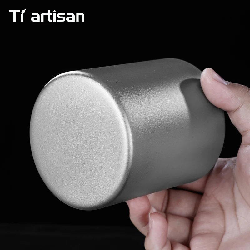Tiartisan 380ml Titanium Handless Coffee Mug Double-walled Anti-scald Water Tea Cup For Outdoor camping picnics