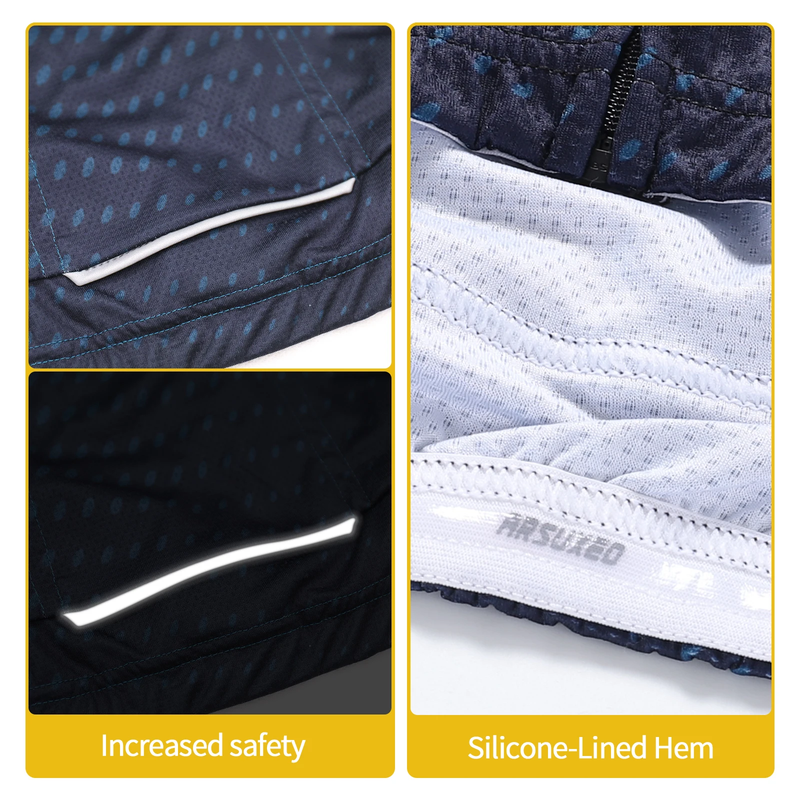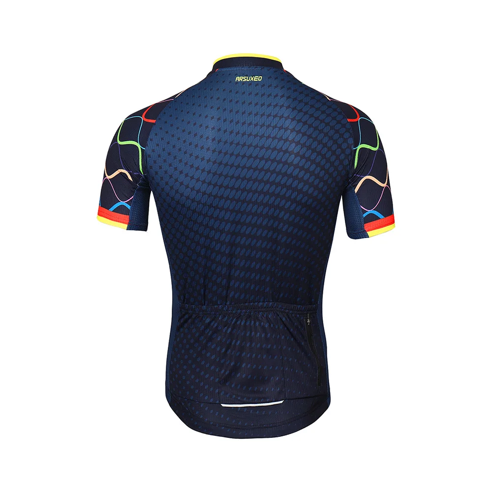 ARSUXEO Men's Cycling Jersey Bicycle Summer Short Sleeves Mountain Bike T-Shirt With Zipper Pockets Reflective Riding Clothing