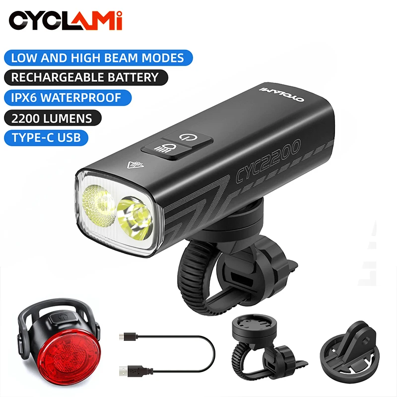 CYCLAMI Bicycle Bike Light LED 2200 Lumens High Brightness Multi-Function Road MTB Cycling Safety Front Lights Bike Front IPX6