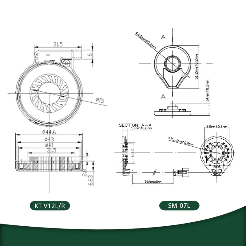 Ebike KT Pedal Assist Sensor V12L D12L/R 8 12 Magnets E-bike Accessories Dual Hall Sensors PAS for Electric Bike Bicycle Kit