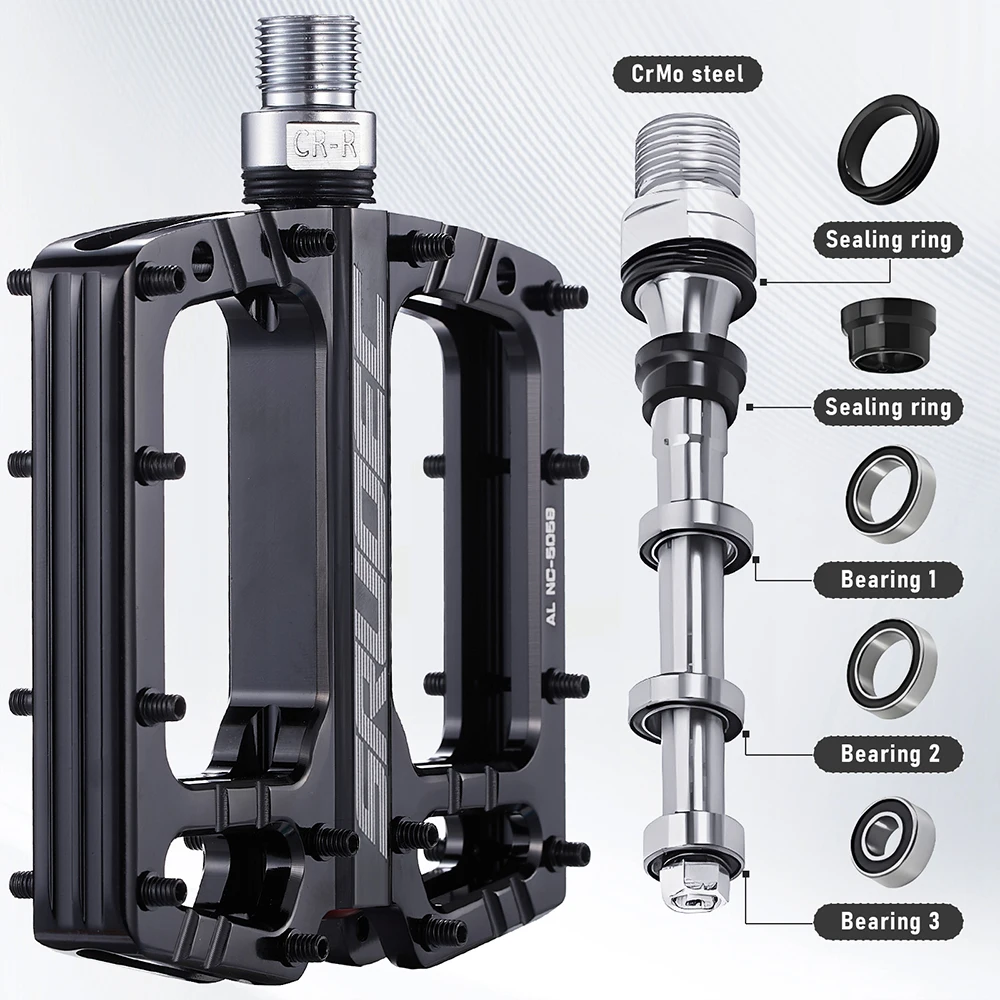 KRSEC Bike Pedals - Anti-Slip Wide Platform 3-Cartridge Bearing Aluminum Alloy Pedals Universal for MTB & Road Bikes