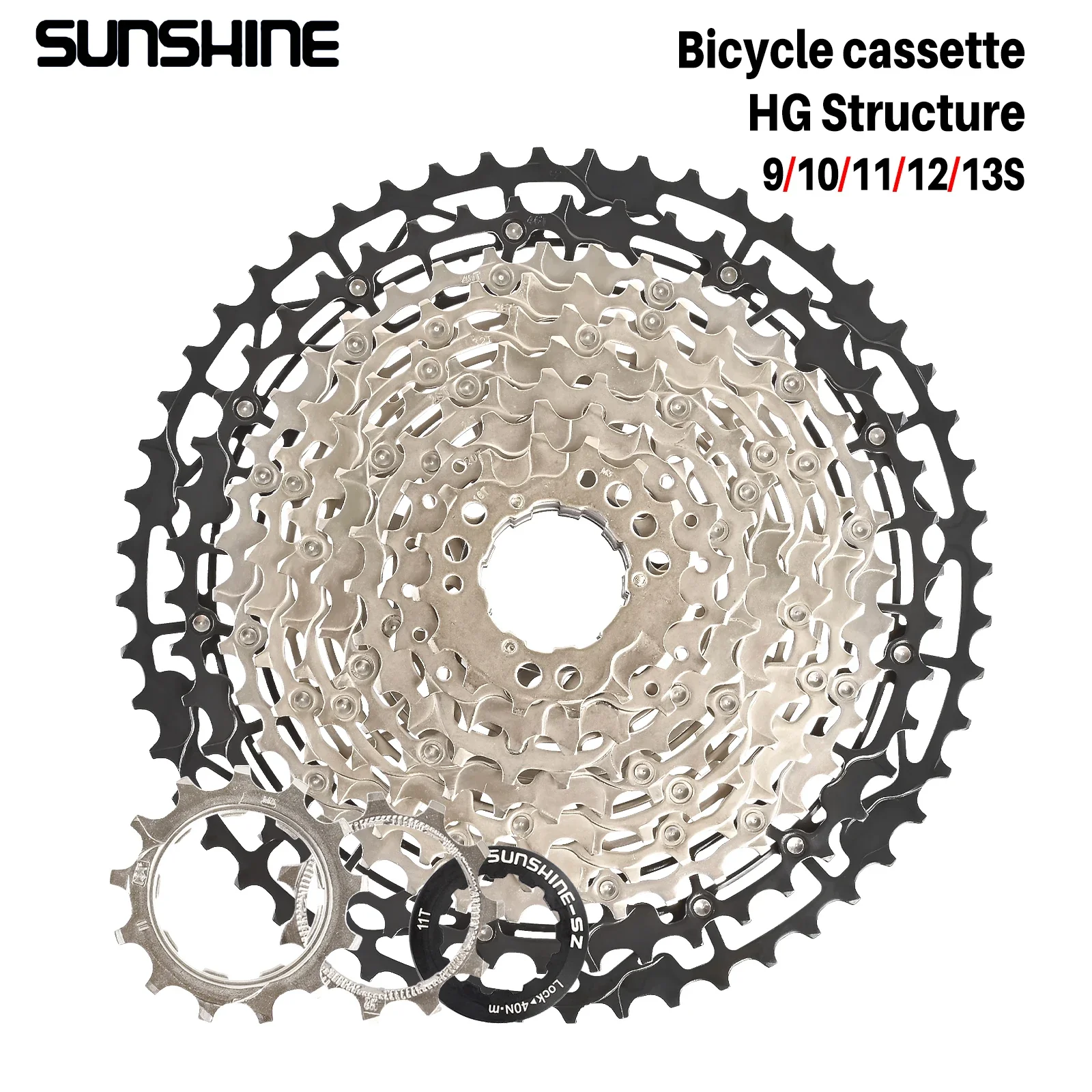 SUNSHINE Ultralight Bicycle Cassette Freewheel Carbon Steel Material 9/10/11/12/13 Speed HG Structure Sprocket for Mountain Bike