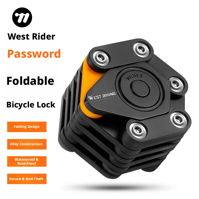 West Rider Portable Folding Chain Lock Password Bicycle Security for Mountain Road Bike Cycling Equipment