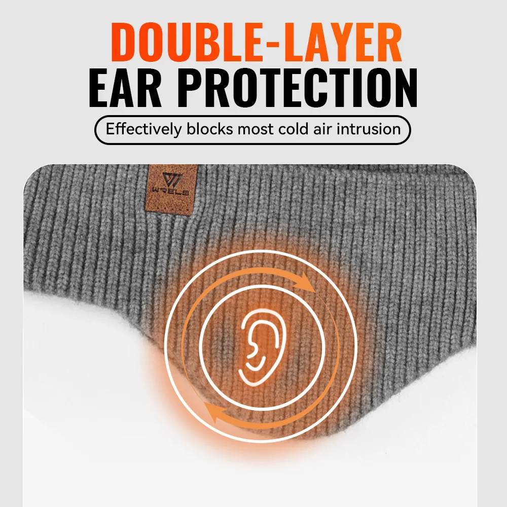 WRELS Winter Fleece-Lined Earflap Beanie Hat Thermal Windproof Knit Cap for Men Women Outdoor