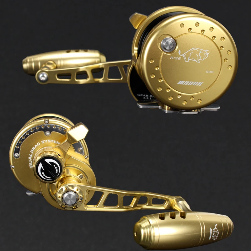 Madox Slow Jigging Reel All Metal Max Drag 35kg 11BB Drum Reel Alarm Full Metal Alloy Reel Deep-Sea Fishing Trolling Reel