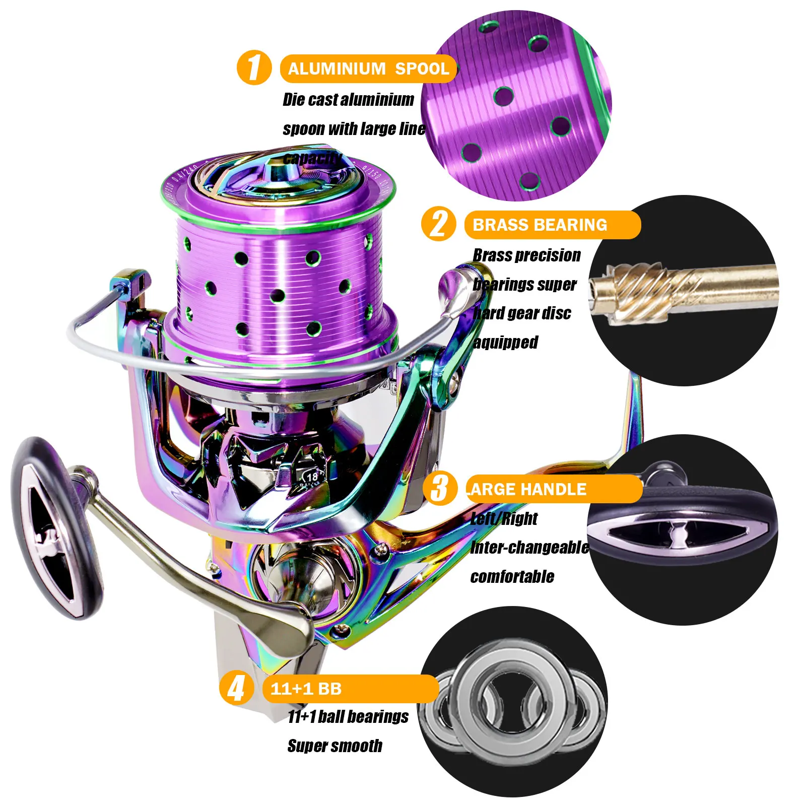 Distant wheel type for ocean boat, rock, beach, lake, river; spinning method with 18+1BB bearings.