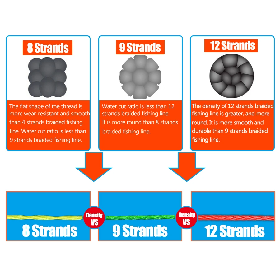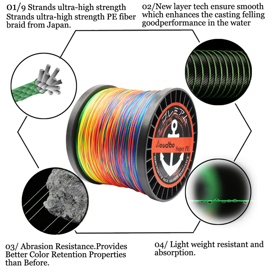 1500m length, 9 strands PE braided multifilament for strong strength.