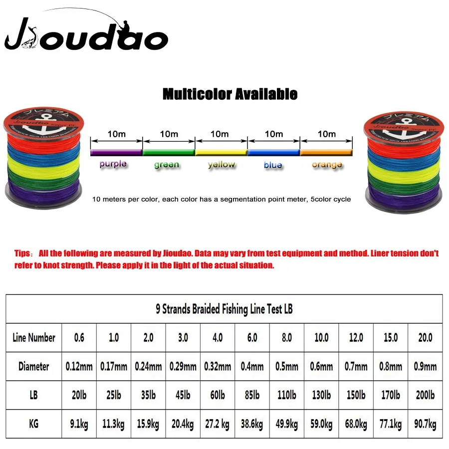 Tips: All the above are measured by JIOUDAO. Data may vary from test equipment and method. Liner tension don't refer to knot strength. Please apply it in the light of the actual situation.