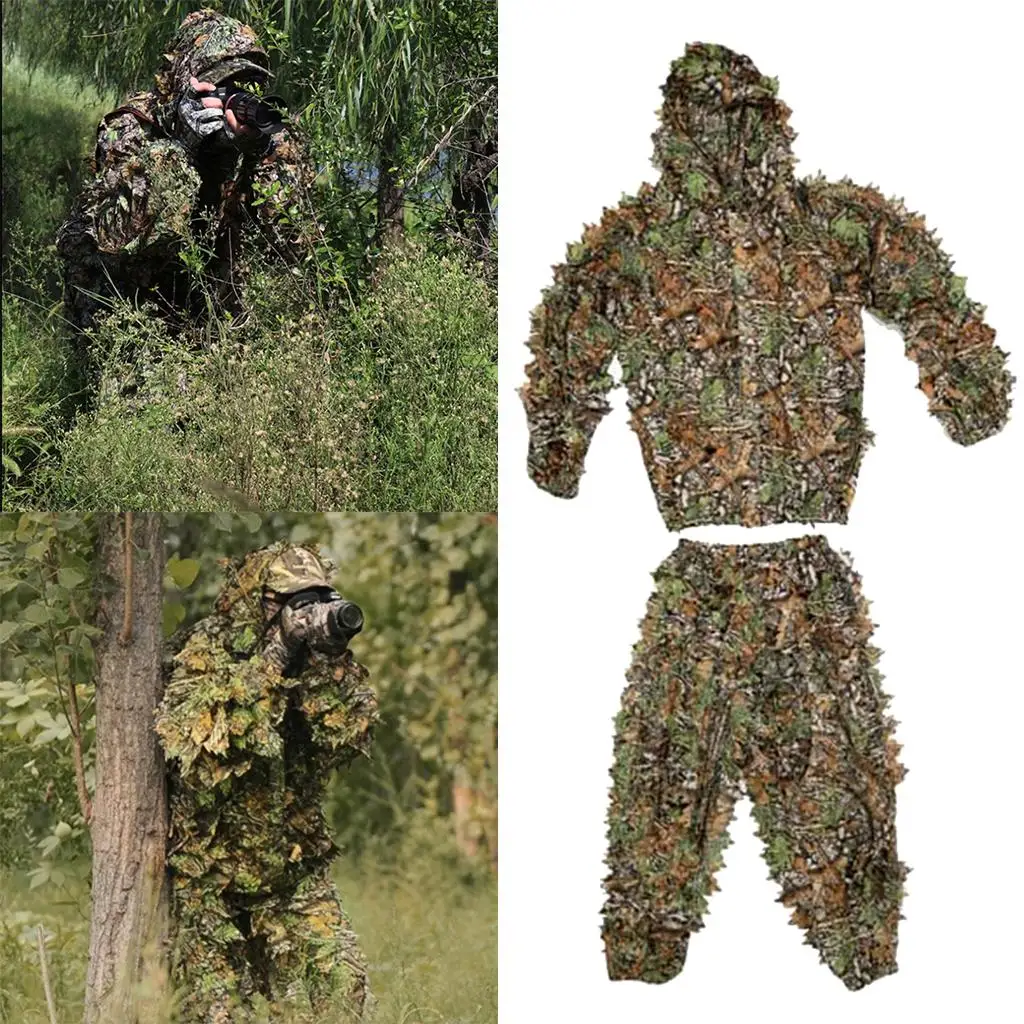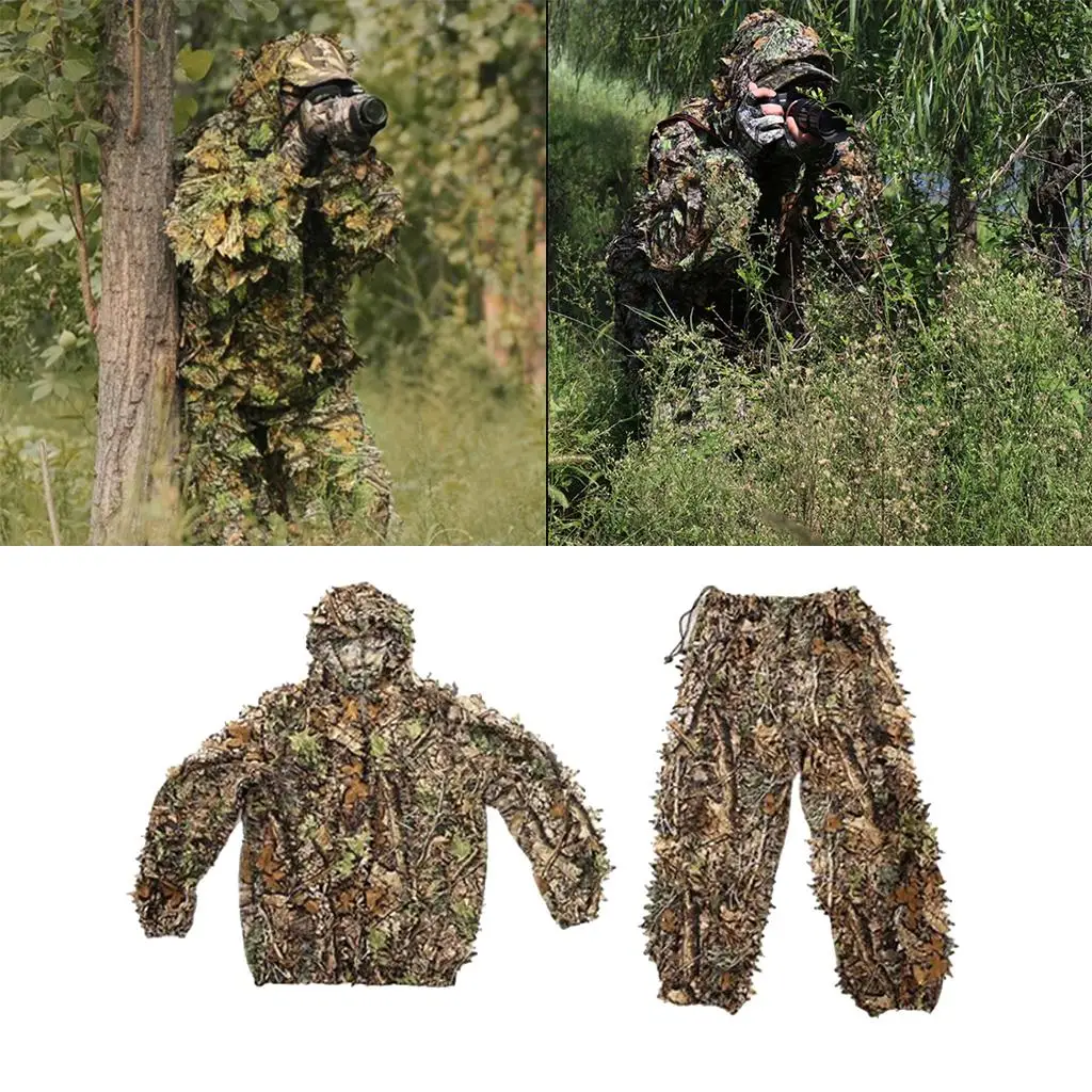 Outdoor Camo Suits Ghillie Suits 3D Leaf Woodland Clothing Sniper Clothes Pants for Jungle Hunting, Shooting