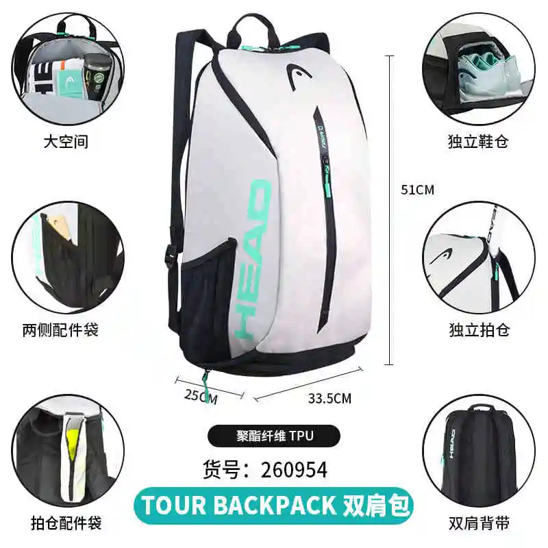 HEAD Tour Black Capacity for 2 Rackets Shoulder Tennis Sports Racket Bag Court Bag With Shoes Compartment Tennis Bag