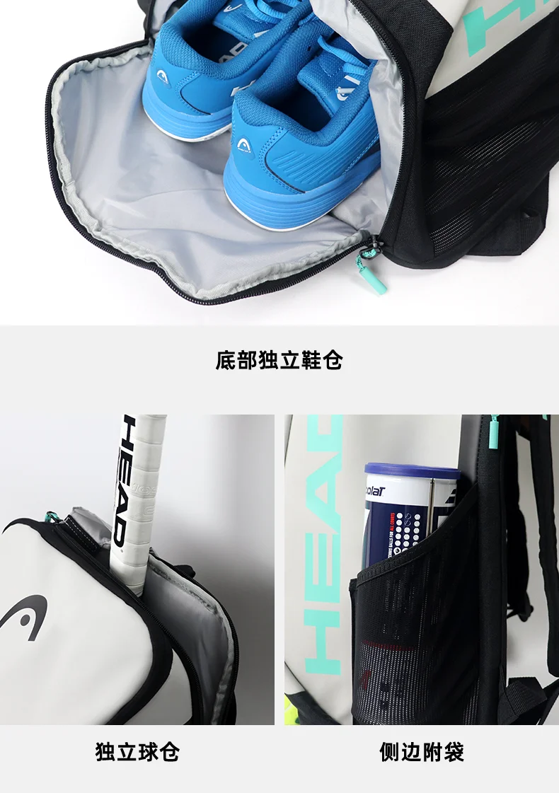 Capacity for 2 rackets, shoulder tennis sports racket bag with shoes compartment.