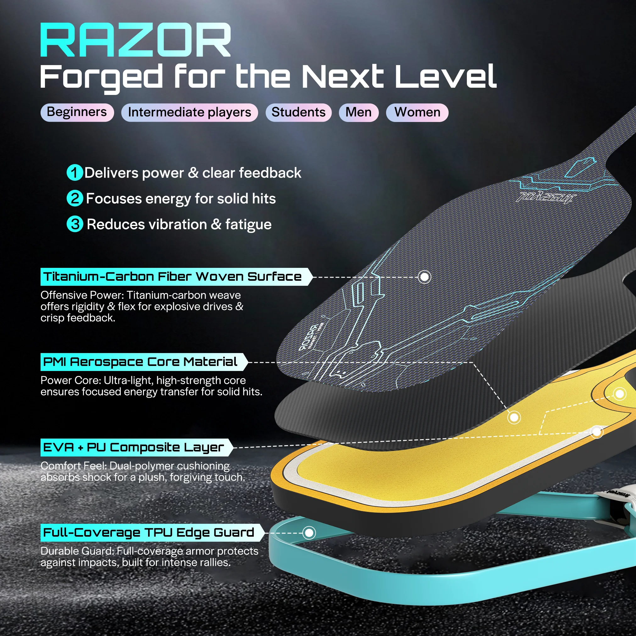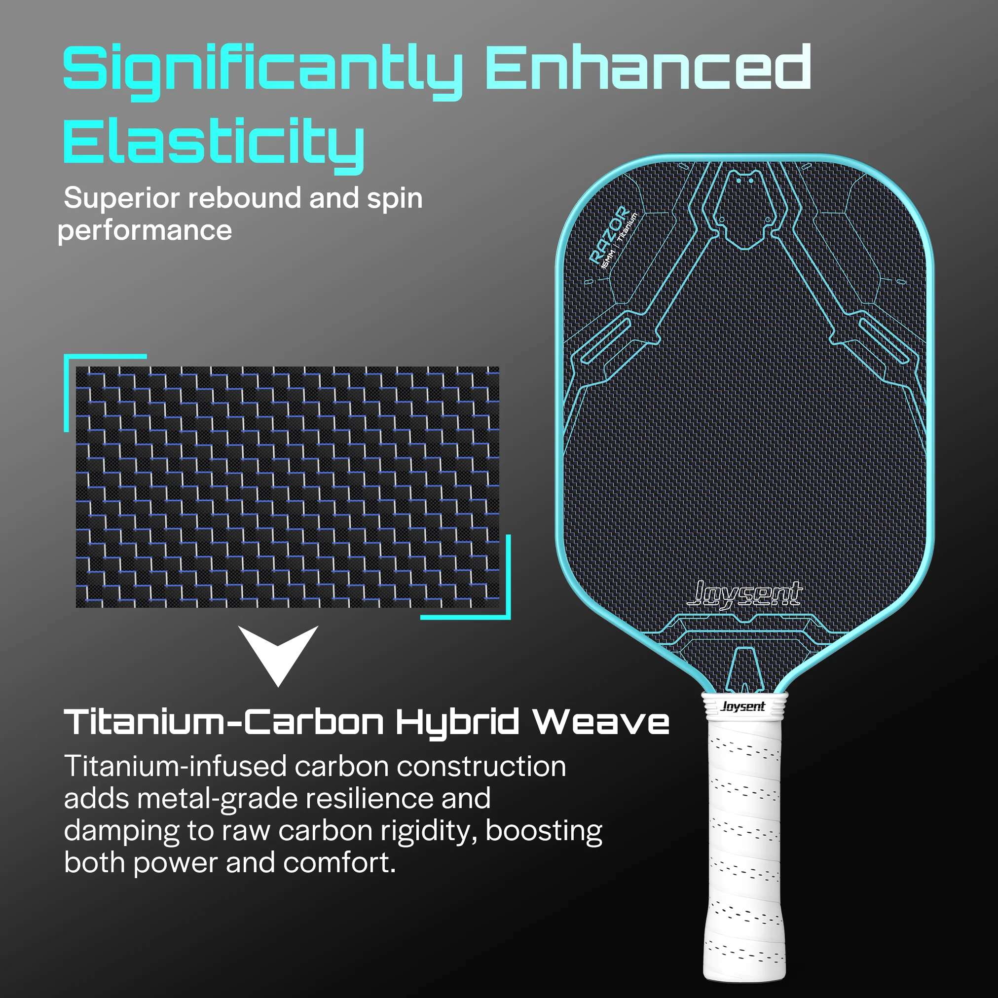 Joysent Pickleball Paddle Titanium Carbon Fiber Weave Surface Pickleball Racket For Spin&Control 16mm PMI Gen4 Core Thermoformed