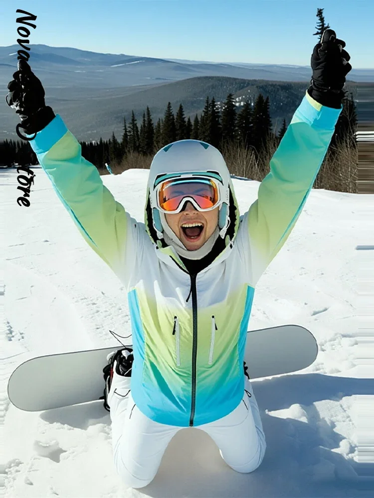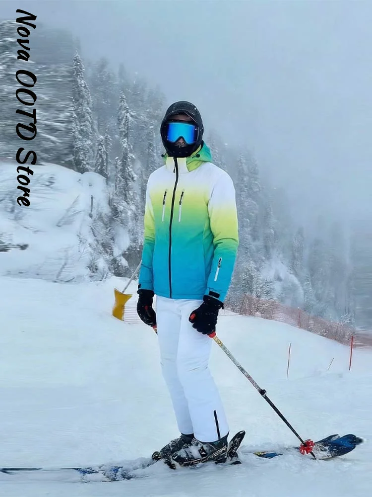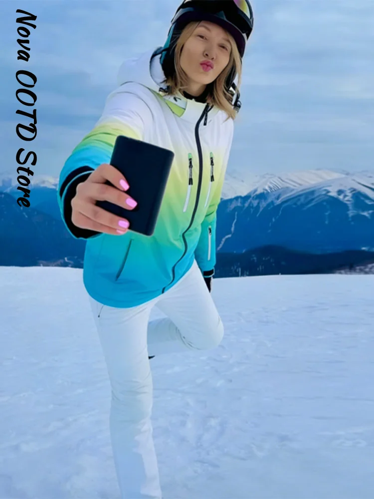 Women's Winter Ombre Ski Jacket & Pants Hooded Waterproof Windproof Warm Thermal Ski Suit Outdoor Sports Snow Wear