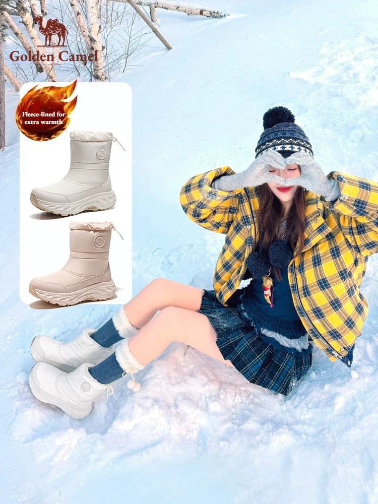 GOLDEN CAMEL Outdoor Snow Boots for Woman Winter Plus Velvet Warm Waterproof Non-slip Hiking Boots 2026 New Fashion Cotton Shoes