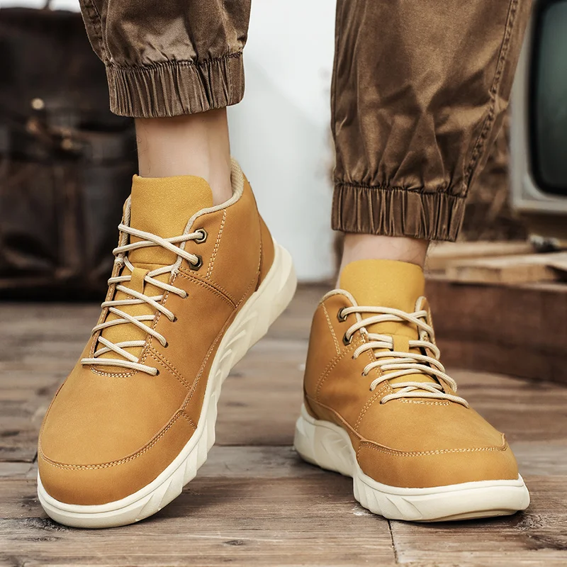 Thick Soled Boots Men's Casual Shoe Brown Lace Up Hiking Boots Ankle Boots for Men Classic Shoe Cowboy Series Set Platform Shoes