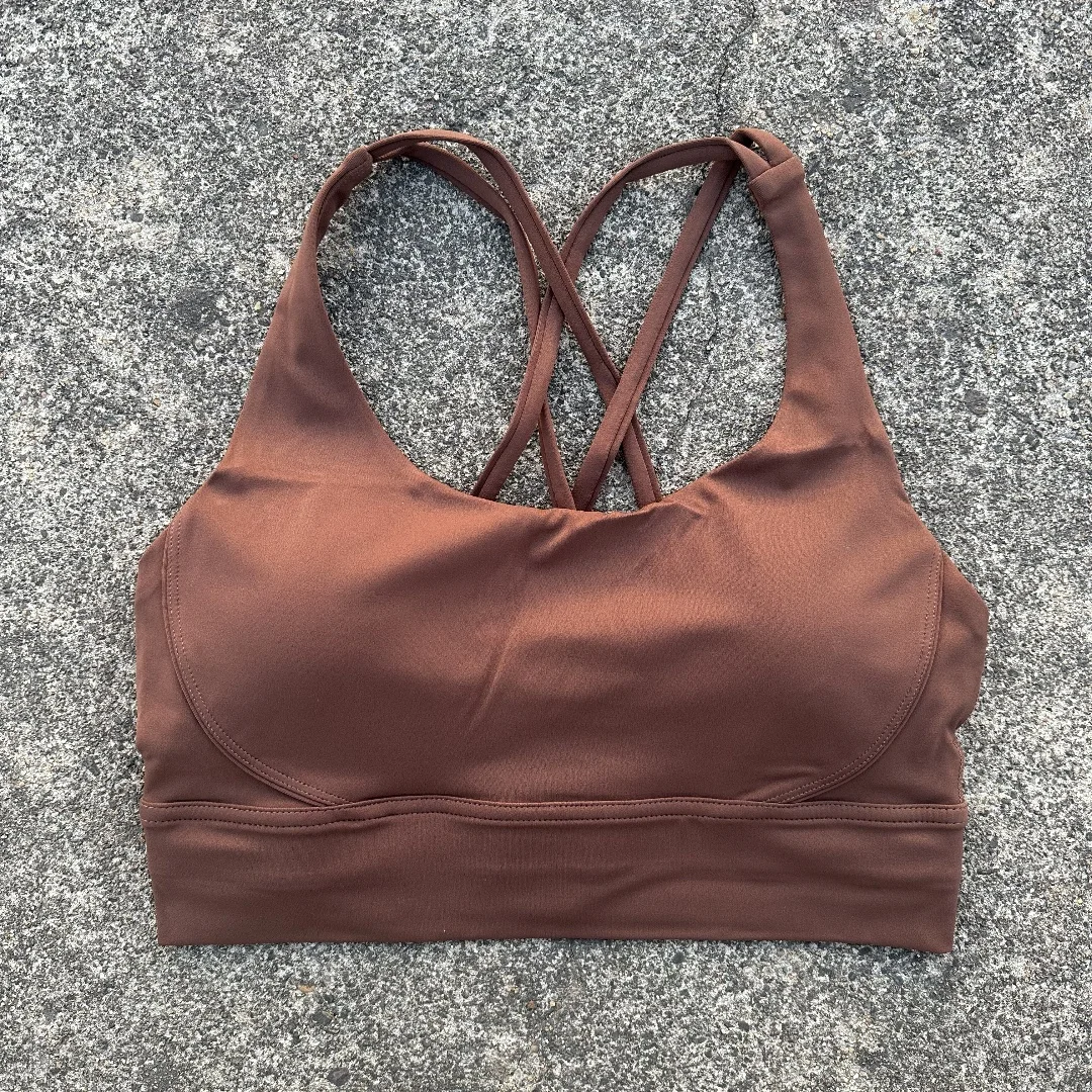 Solid Color Women cross Back Soft Fitness Sports Bra Top Gym Yoga underwear Tight Workout With Chest Pad shoulder strap Training