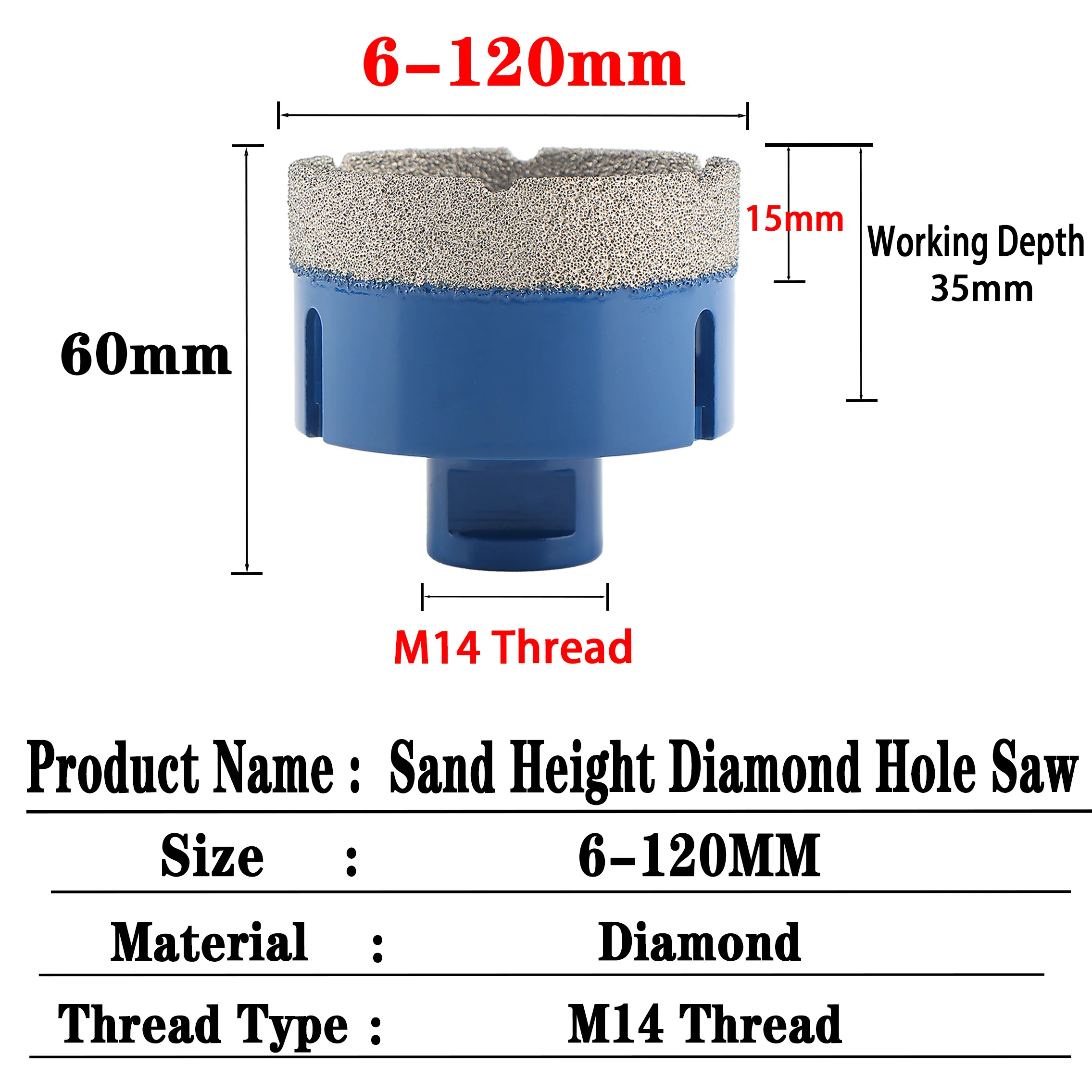 M14 Thread Vacuum Brazed Dry Diamond Drilling Core Bit 6-120mm For Ceramic Tile Granite Marble Porcelain Brick Stone Hole Opener