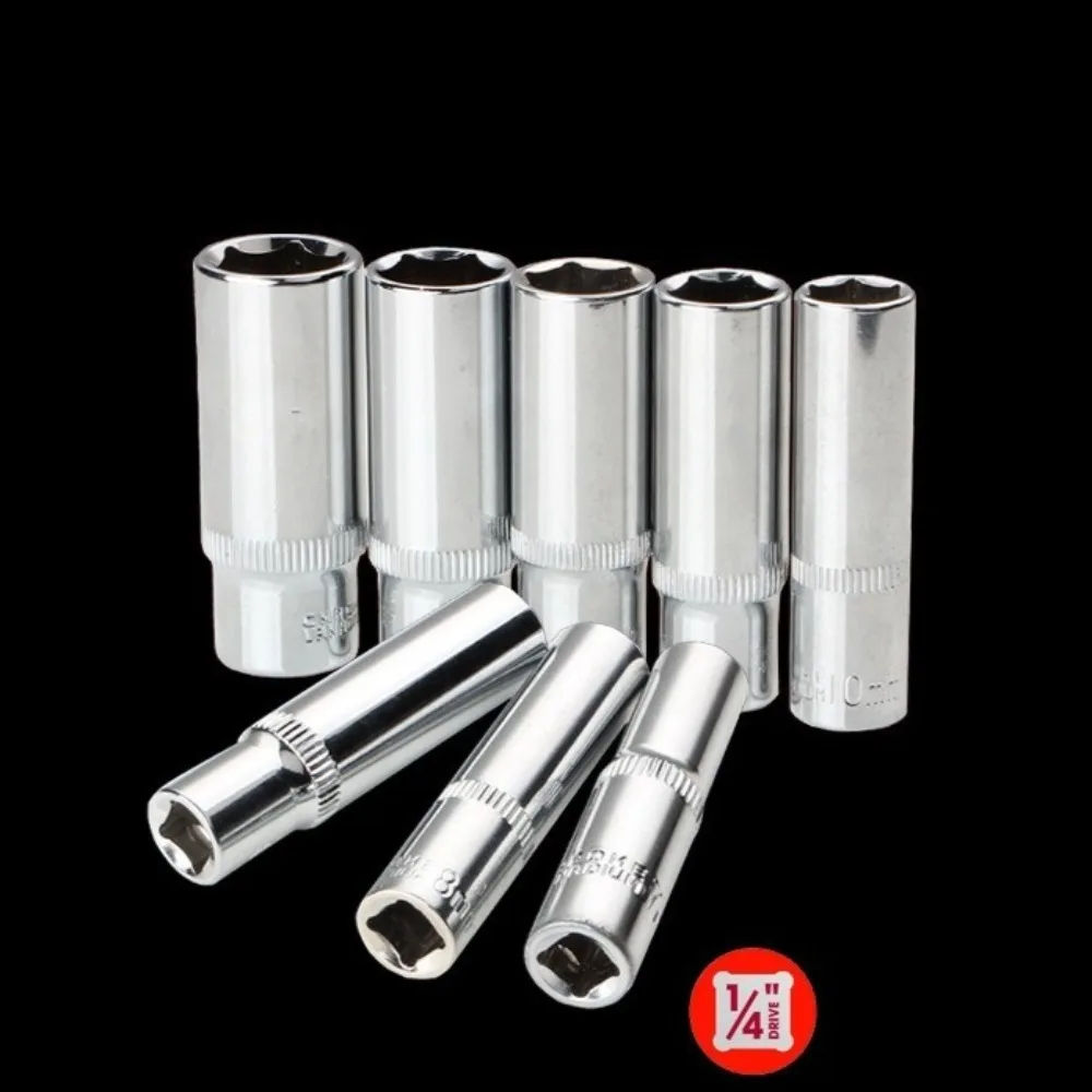 1/4inch Deep Socket Adapter 4 5 5.5 6 7 8 9 10 11 12 13 14mm Hex Socket Wrench Heads Ratchet Hex Socket Sleeve Hand Tool