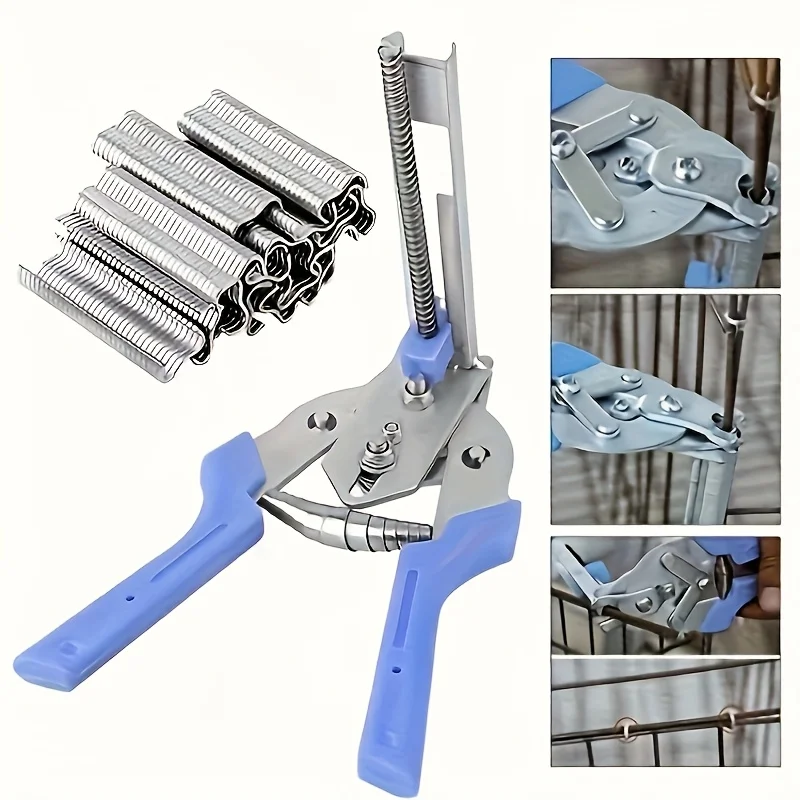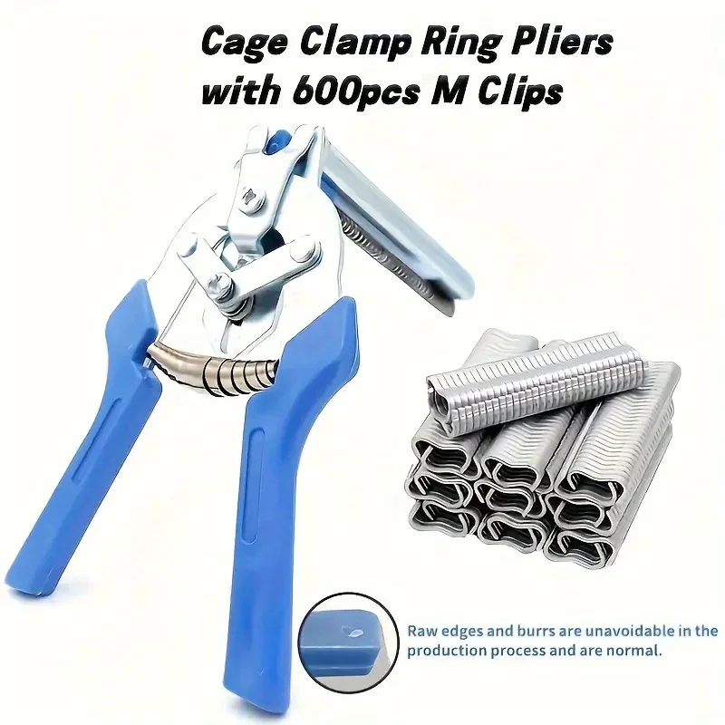 Heavy-Duty Iron Cage Pliers Set, Pig Pen Clamp Kit with 600 M-Type Clamps - Durable Home Repair Tools Suitable