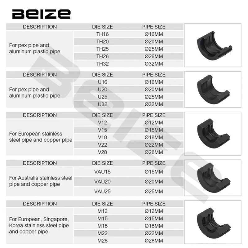 PEX & Stainless Steel Tube Crimping Tool, Universal Jaws with TH/V/U/M/VAU Crimping Die, Plumbing Clamping Tool, M Dies