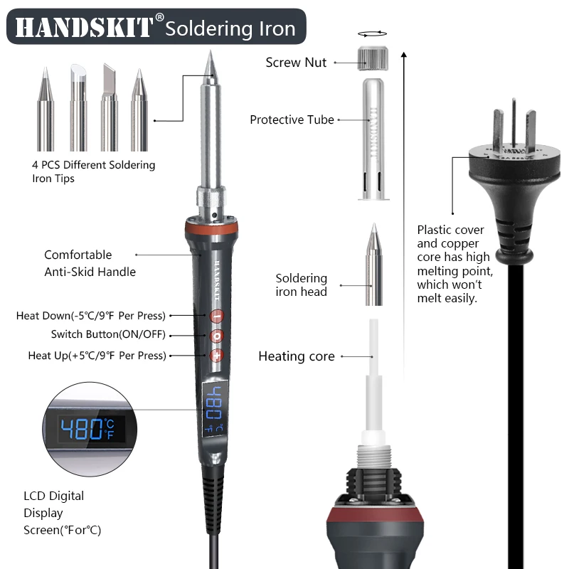 100W Electric Soldering Iron Digital Temperatura Adjustment Auto Sleep Internal Ceramic Heating Electronic Welding Tools