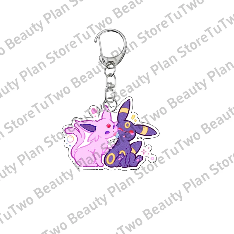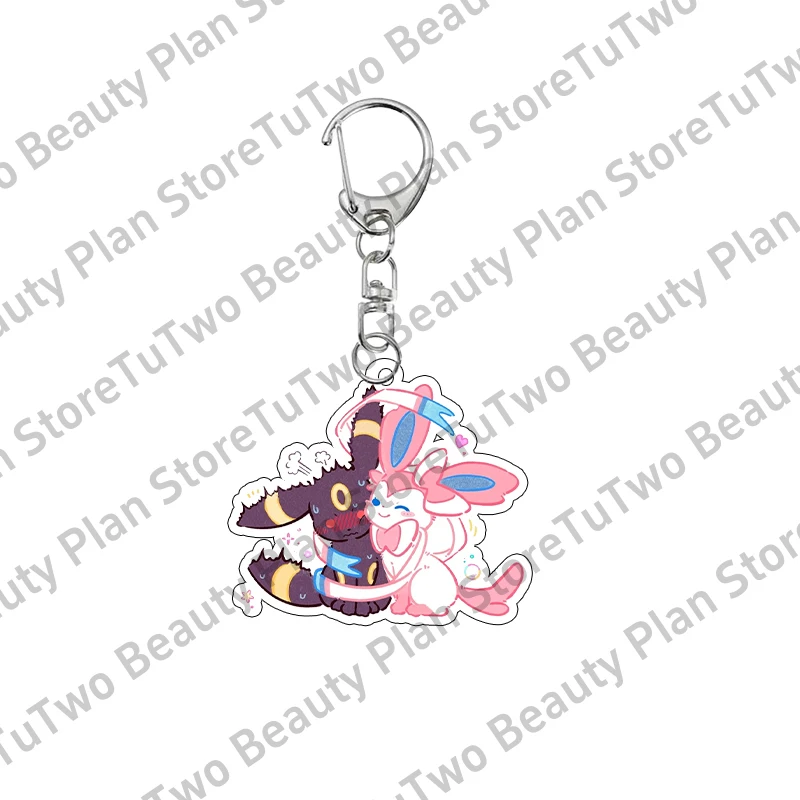 Cartoon Anime Acrylic Keychain Accessories Eevee Umbreon Sylveon Vaporeon Mew Couple Family Ornaments Bag Pendant Charm Gifts