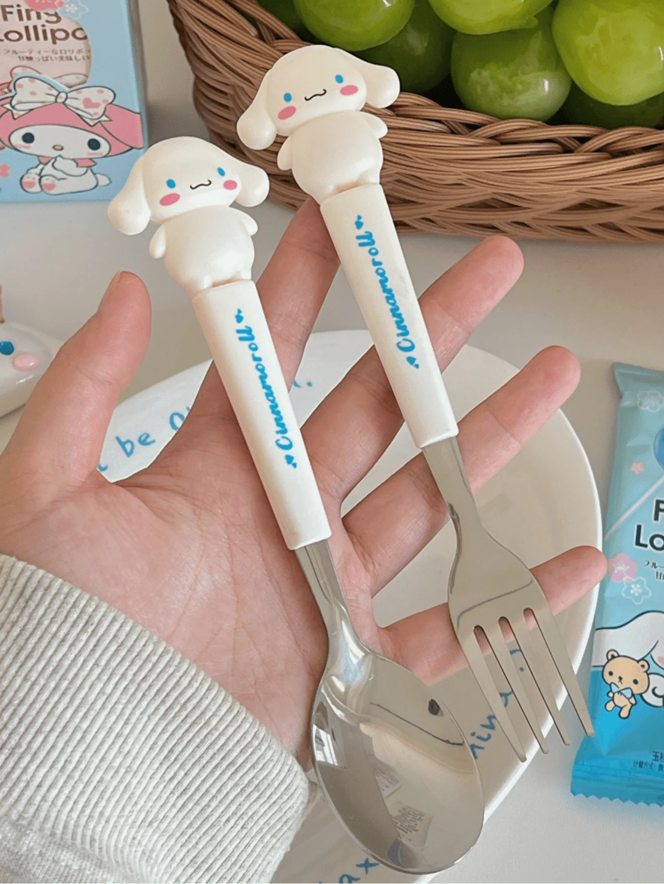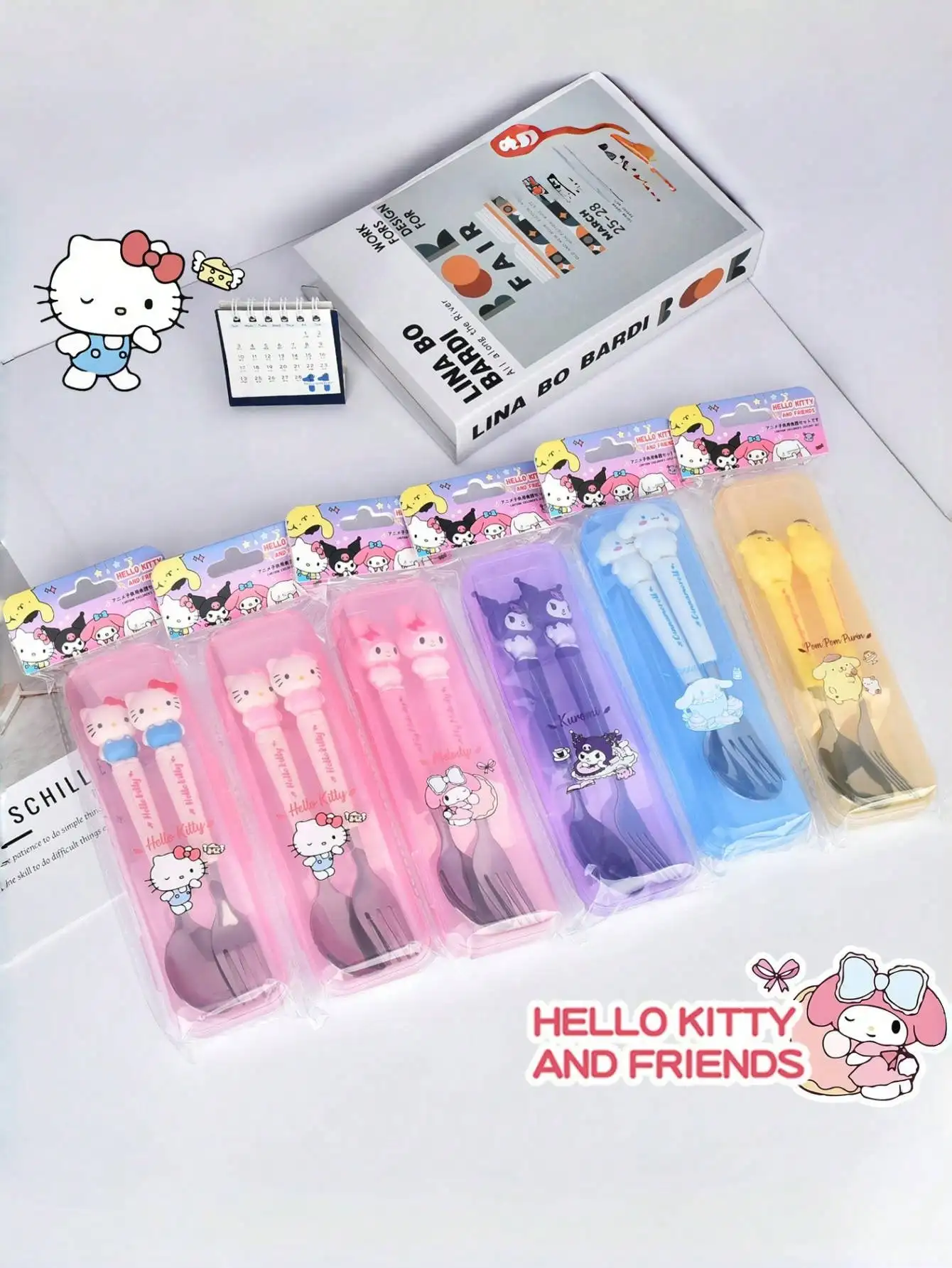 2pcs/set Stainless Steel Fork And Spoon Set, Hello Kitty Cartoon Cute Portable Reusable Tableware, Home And Outdoor supplies