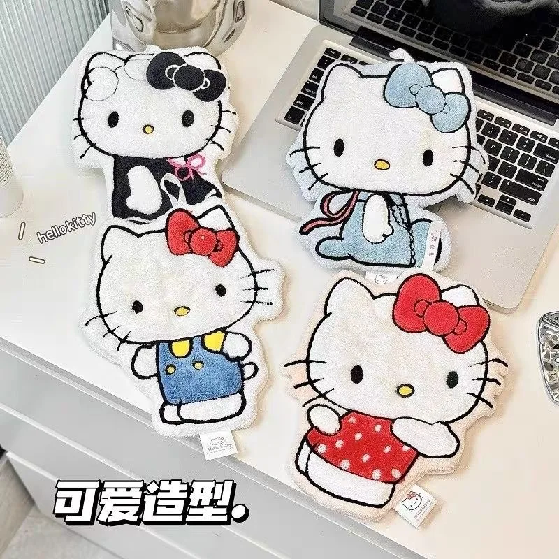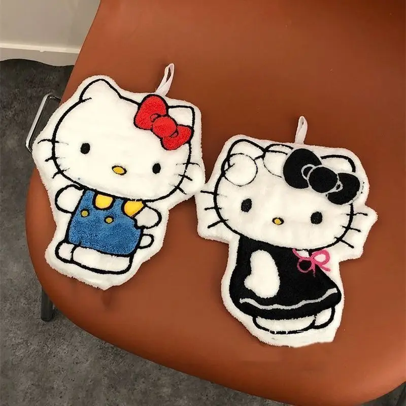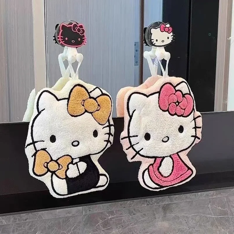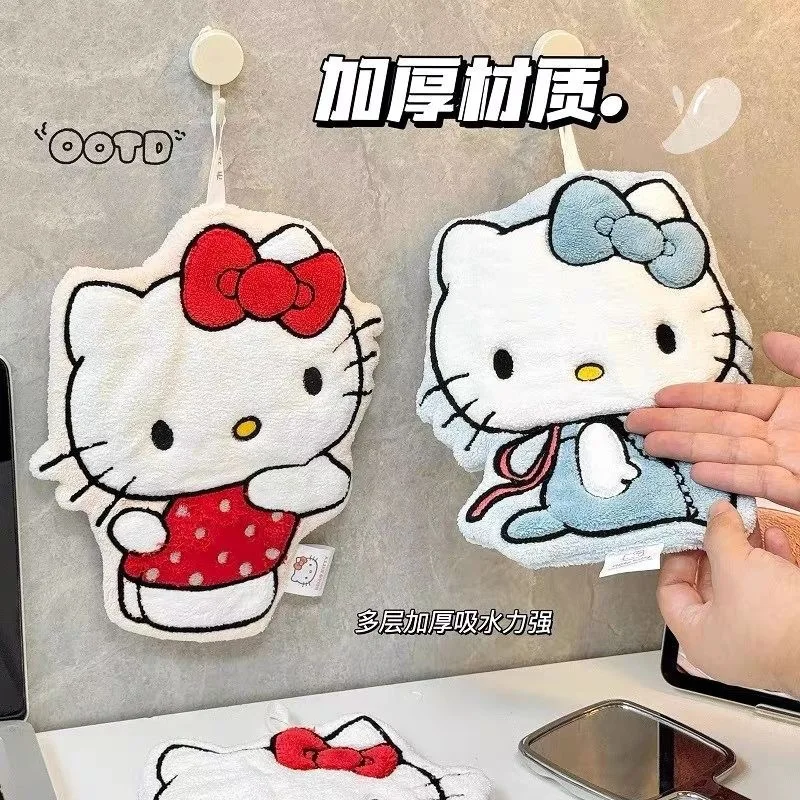 Hellokitty Kawaii Hand Towel Cartoon Hand Washing Towel Hanging Type Anime Double-Layer Thick Water-Absorbent Soft Coral Velvet
