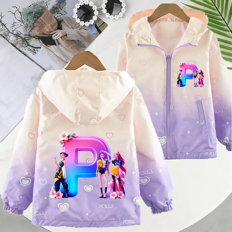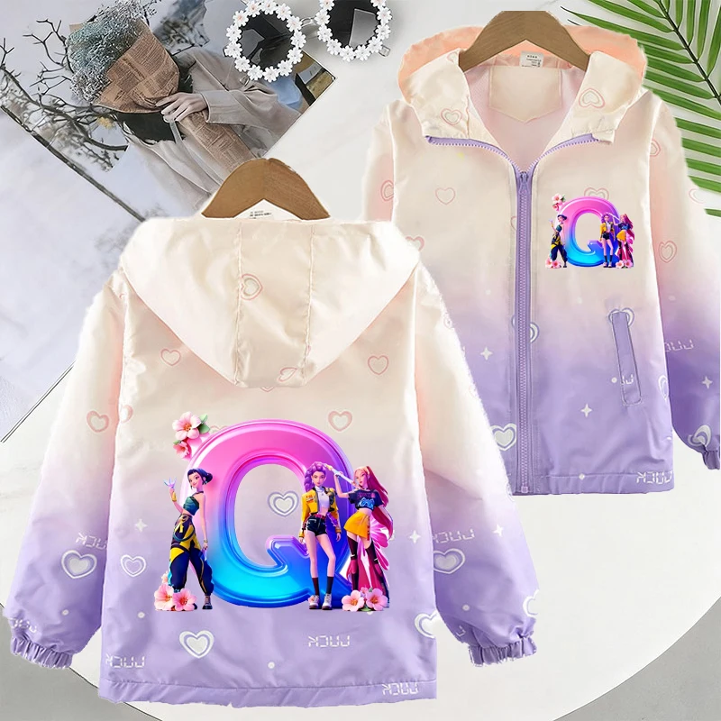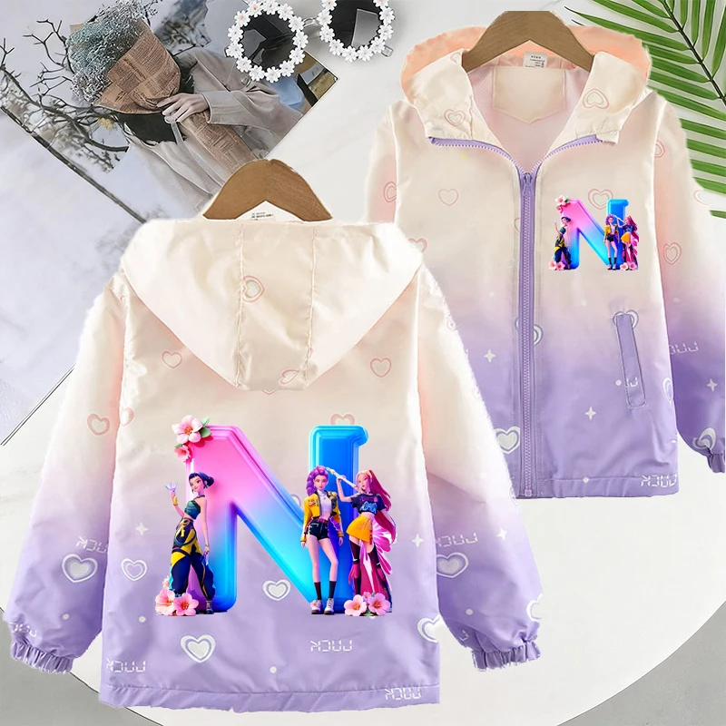 KPop Demon Hunters Kid Outdoor Jackets Cartoon Letter A-Z Girls Sweatshirt Coat Windbreaker Girl Autumn Winter Zip Jacket Gift