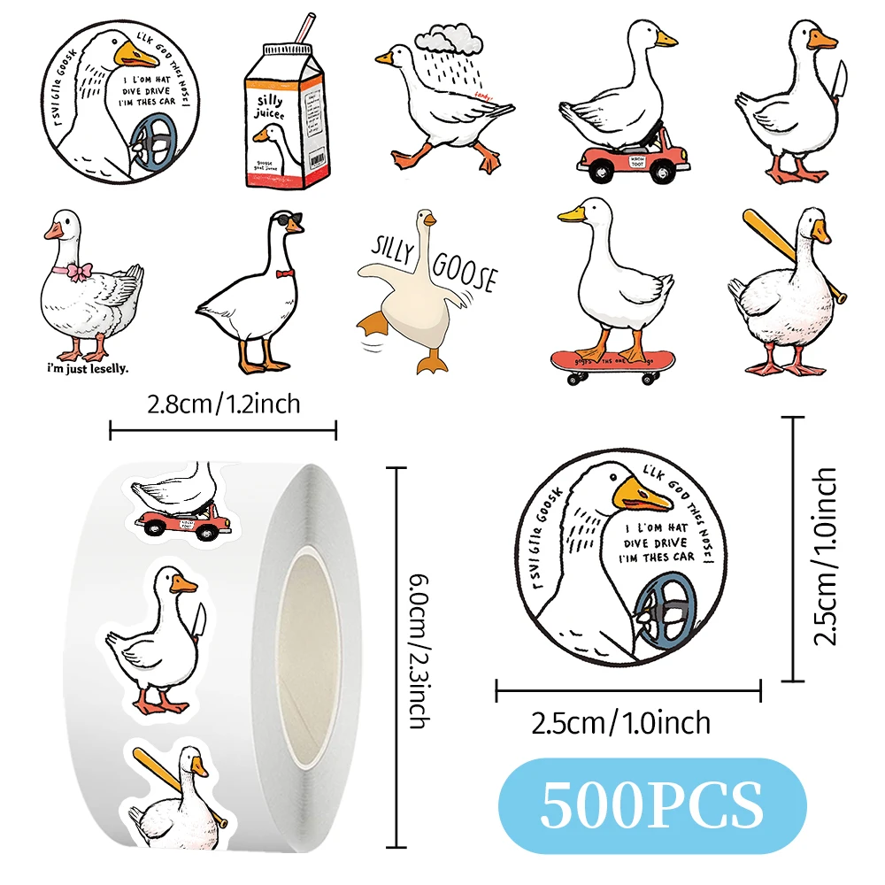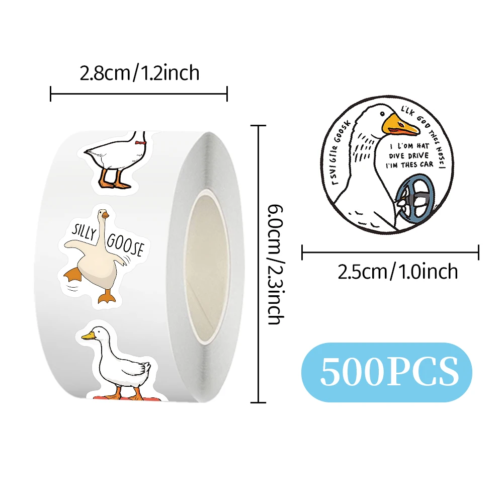 500Pcs/Roll Funny Silly Goose Roll Sticker Cute Animals Sealing Decal DIY Luggage Phone Cup Scrapbook Kid Toys Party Gifts