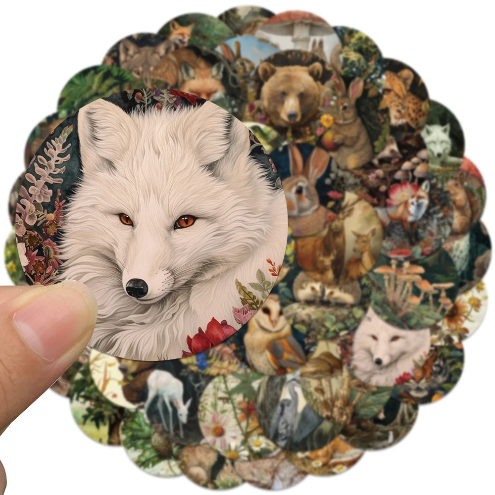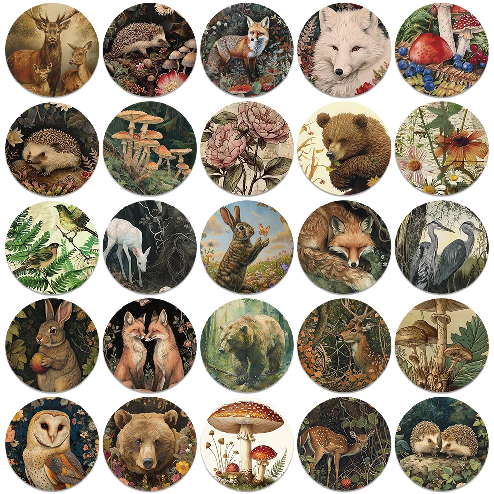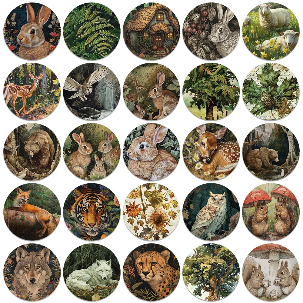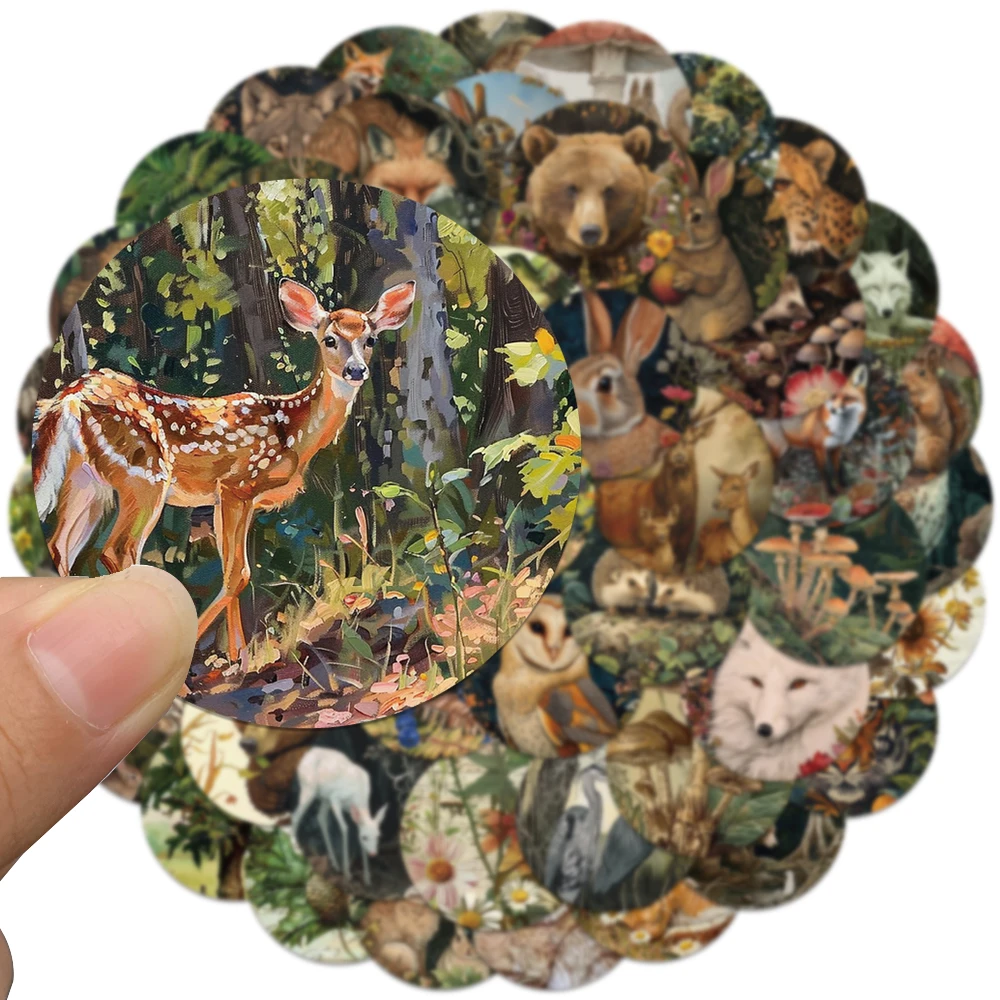 50pcs Vinyl Laptop Decals Aesthetic Retro Cartoon Forest Plants Animals Stickers Luggage Guitar Phone Diary Waterproof Graffiti