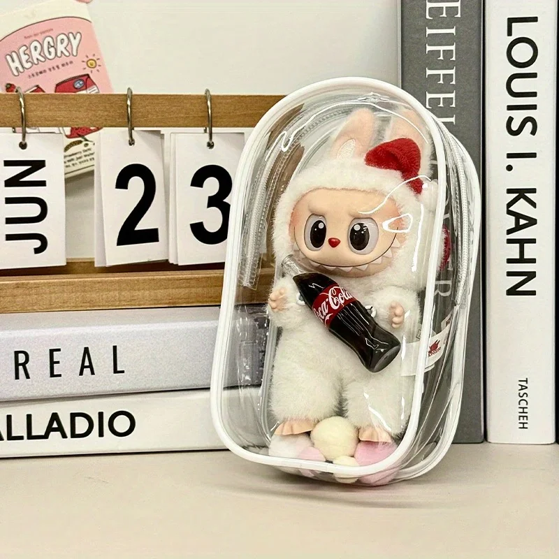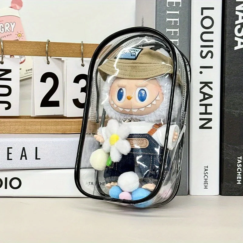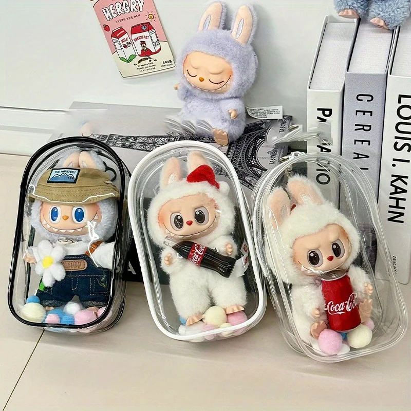 1 Labubu dust cover, PVC transparent portable storage bag for outdoor use, Labubu doll walking bag
