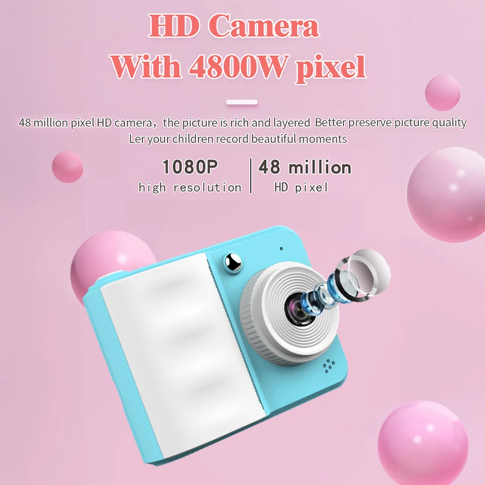 Instant kids Camera Electronic Toys Photo Printer Inkless Thermal with Paper Print Dual-Camera for Christmas Birthday Gift