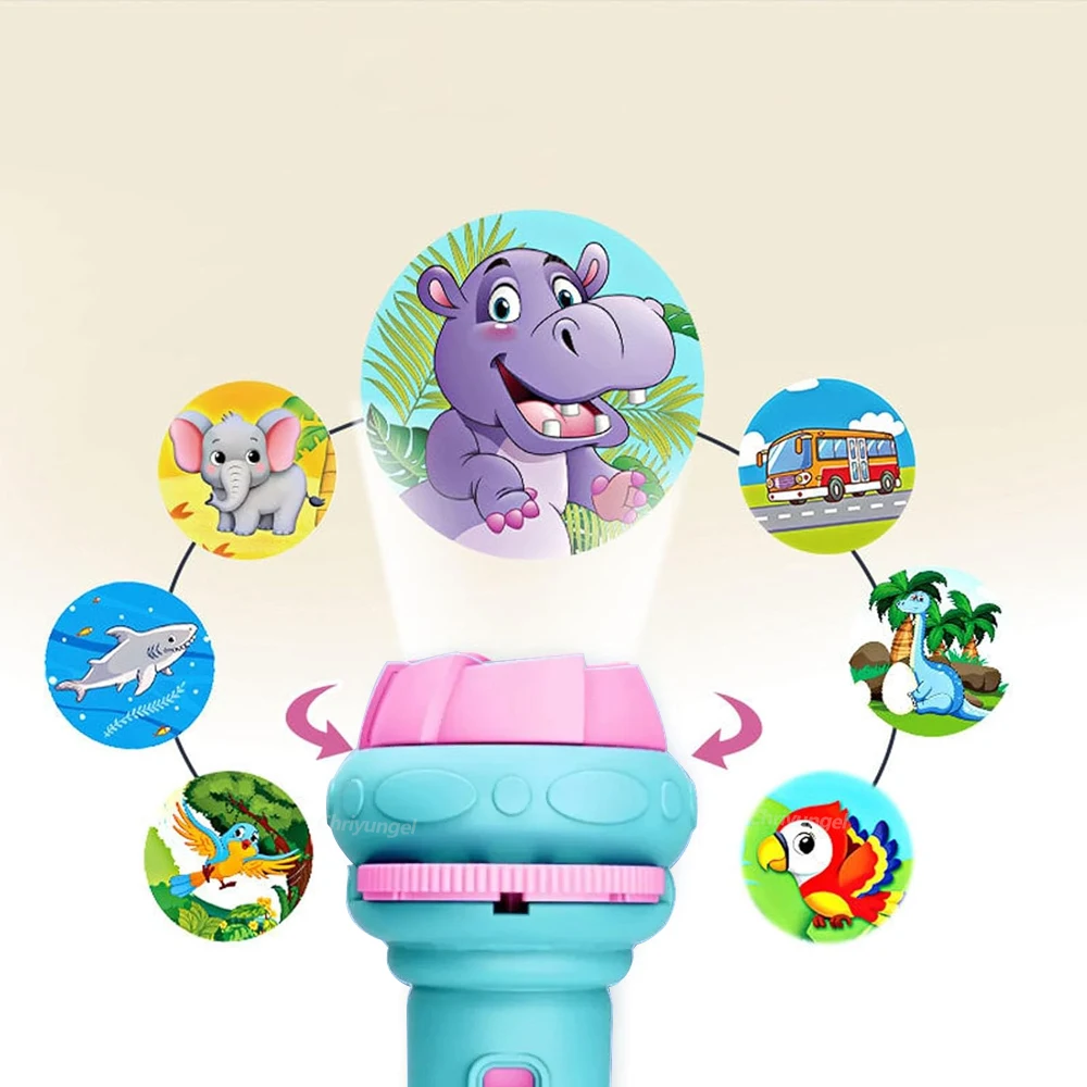 10 Cards Cartoon Projection Flashlight 80 Patterns Creative Children Flashlight Toy Projector Baby Toys Bedtime Story Book Toy