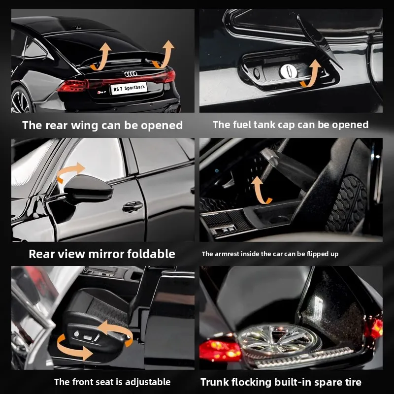 1: 18 RS7 Sport Remote Key Edition Super Run Sound and Light Alloy Model Advanced Children's Toy Birthday Gift Decoration