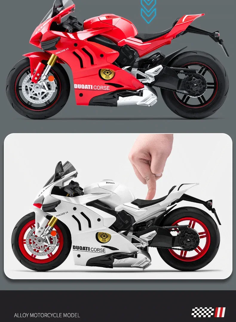 1:10 Ducati V4S BMW S1000RR Kawasaki H2R Die Cast Motorcycle Model Vehicle Collection Sound and Light Off Road Autocycle Toys