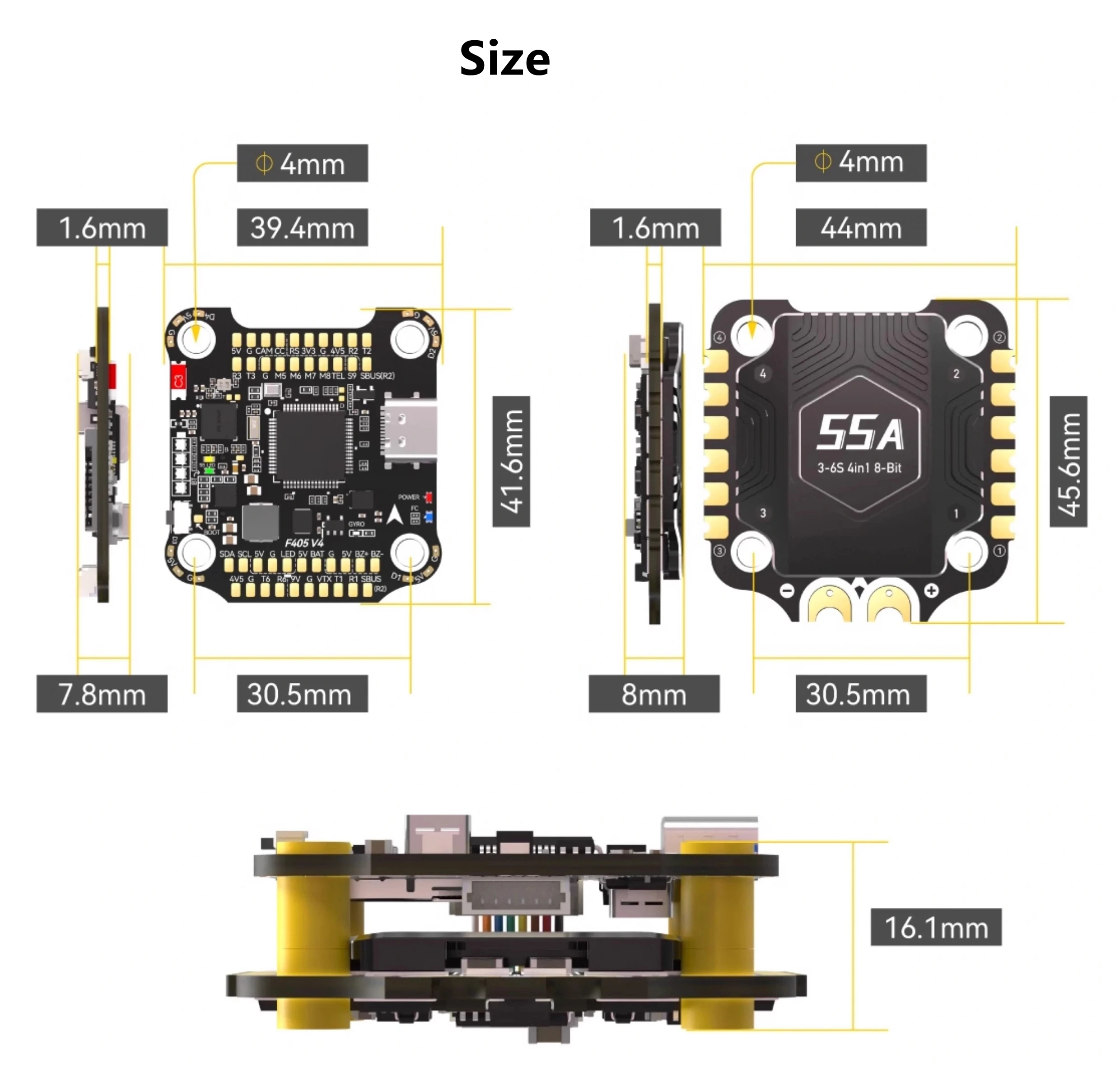 F405 V4 FC Stack BLS 55/60A 4-in-1 ESC&FC 3-6S 30x30 INAV Betaflight Configure Bluetooth RC FPV 5-8 Inch Frame Drone DIY Parts