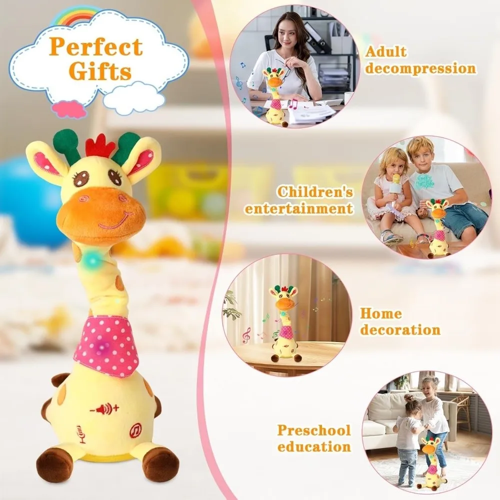 Repeating What You Say Dancing Talking Giraffe Toy with 10 Songs Adjustable Volume Swaying Dancing Giraffe Musical Glowing