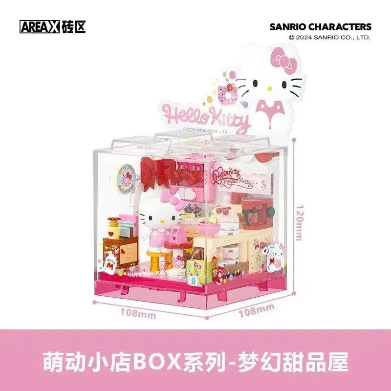 Area-X Sanrio Surprise Blind Box Building Blocks Mini Shop Hello Kitty Kuromi Cinnamoroll Model Decoration Toys For Kids Gift
