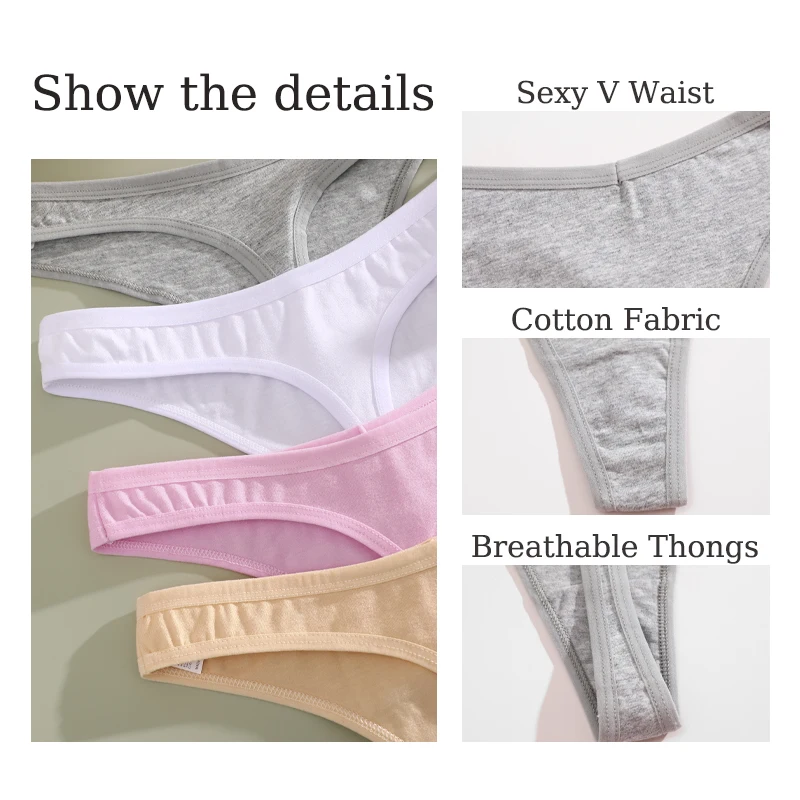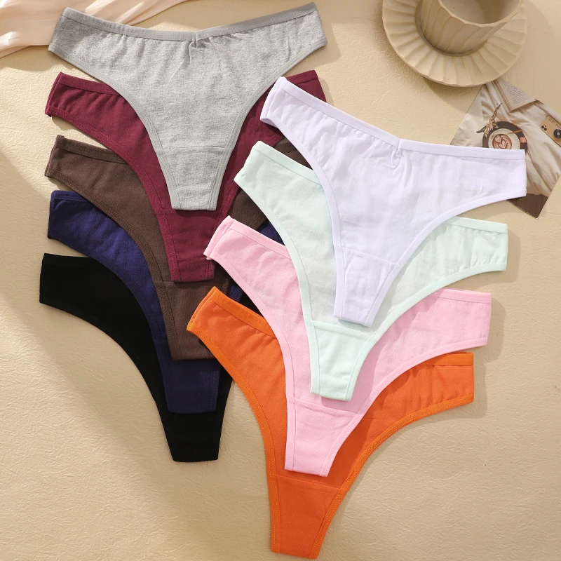 7Pcs/Set Seamless Cotton Panties For Women Sexy Low Waist Cotton Soft Thongs Ladies Solid Color Underpants Breathable G-strings