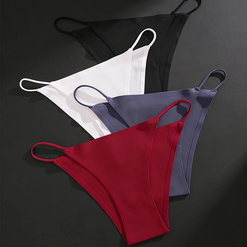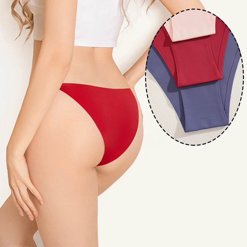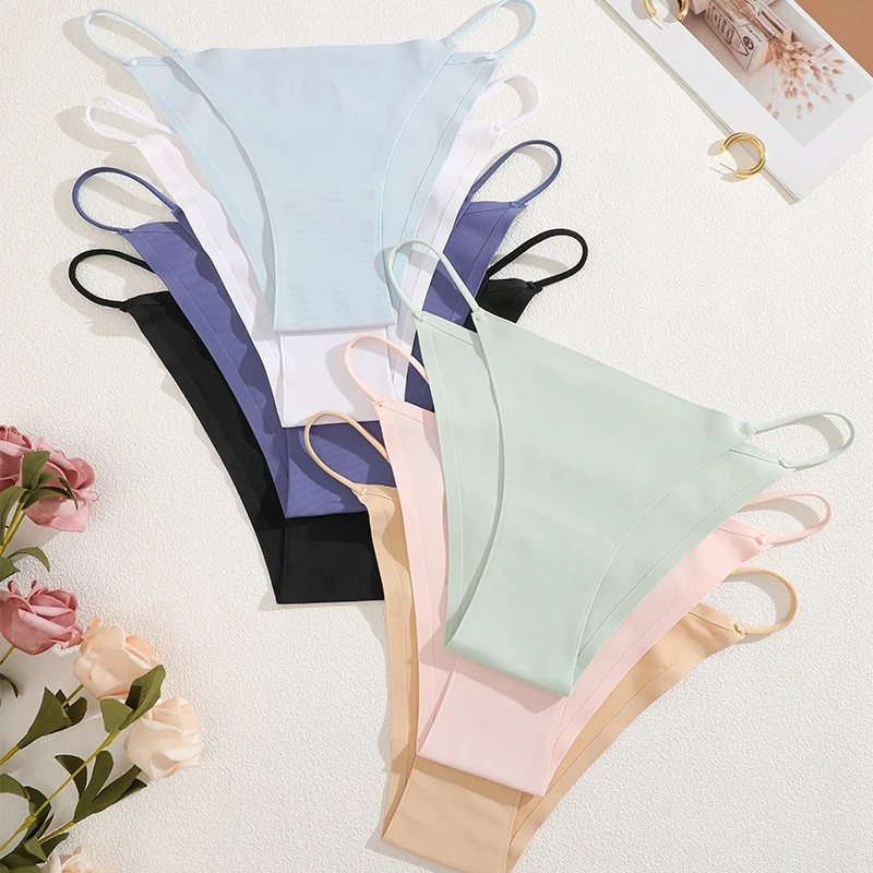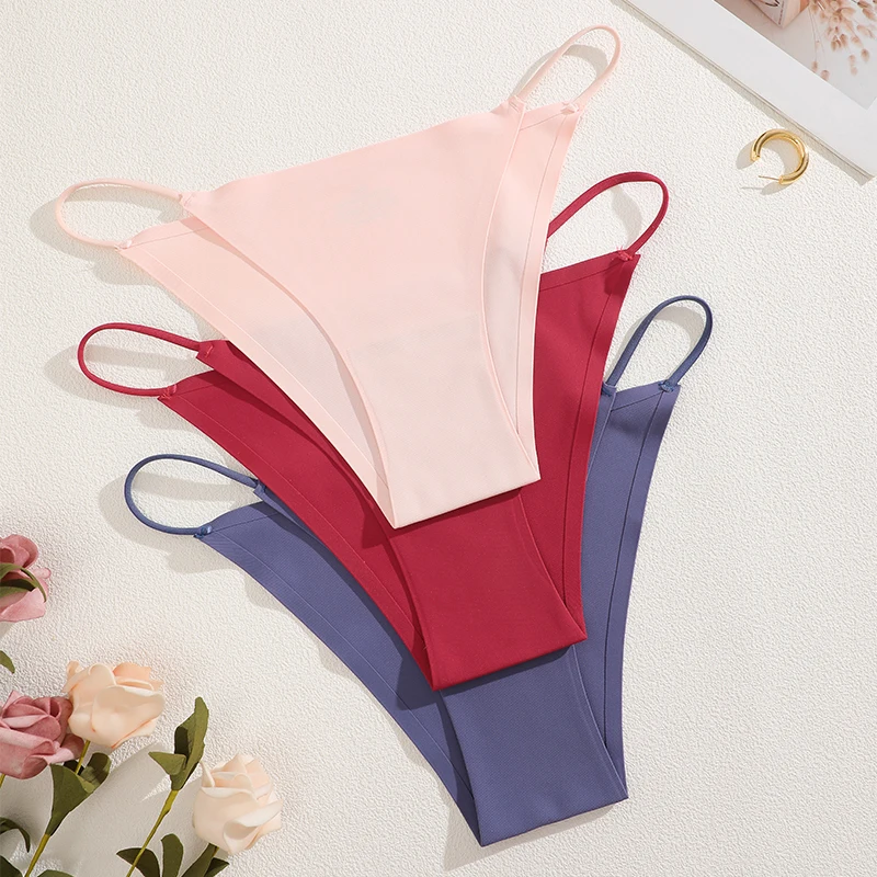 FINETOO 3Pcs Seamless Ice Silk Underwear New Color Sexy Thin Strap Briefs Girls Low Waist Breathable Panties No Trace Lingerie